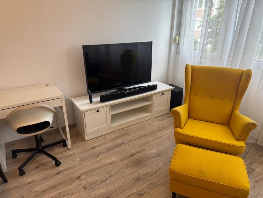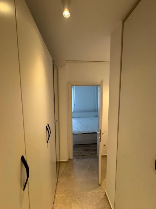 Iznajmljuje se dvosobni stan površine 39m2. Stan se nalazi u visokom prizemlju u neboderu od 10 katova s liftom (ispod je još jedan stan). Neboder je izgrađen 1967 godine i nije stradao u potresu.