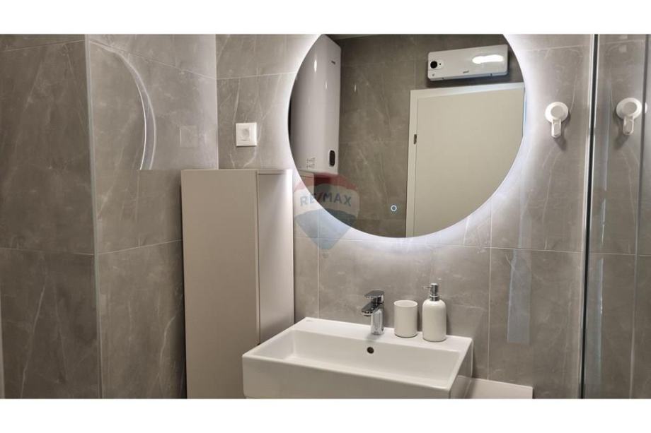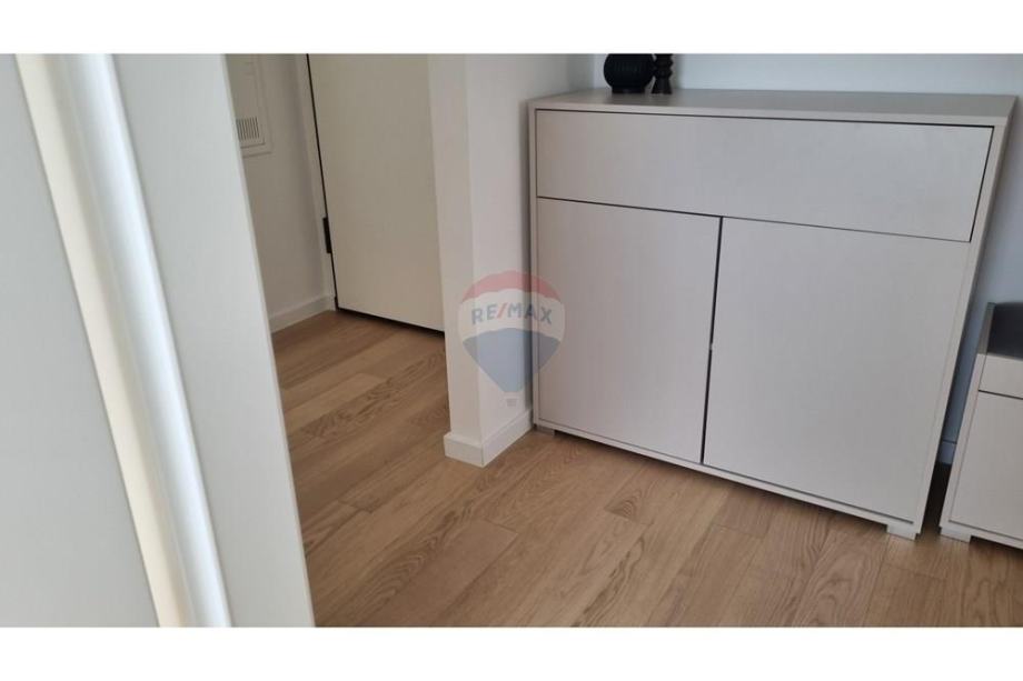 Svi uređaji u stanu su potpuno novi uključuju perilicu rublja, perilicu posuđa, TV, hladnjak, pećnicu i ploču za kuhanje. Interijer je uređen luksuzno i moderno, s naglaskom na udobnost i funkcionalnost.