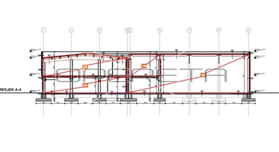 Uredski prostori su predviđeni na 1. katu. Ukupna površina uredskih prostora iznosi 500 m2. Odlična pozicija u blizini Zagreba na glavnoj cesti! Područje pripada Svetoj Nedelji. Više detalja na upit!