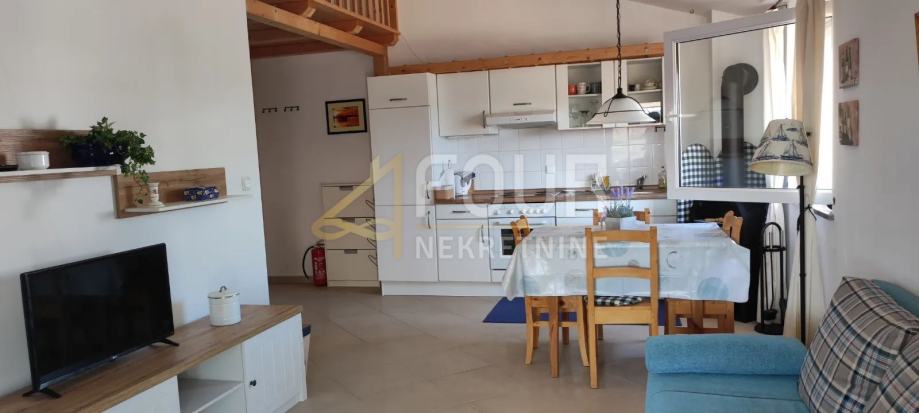 Vrlo je uredan, a nalazi se u stambenoj zgradi novije zgrade te se sastoji od kuhinje s dnevnim boravkom, sobe, kupaonice, zatvorenog balkona i dvije galerije.