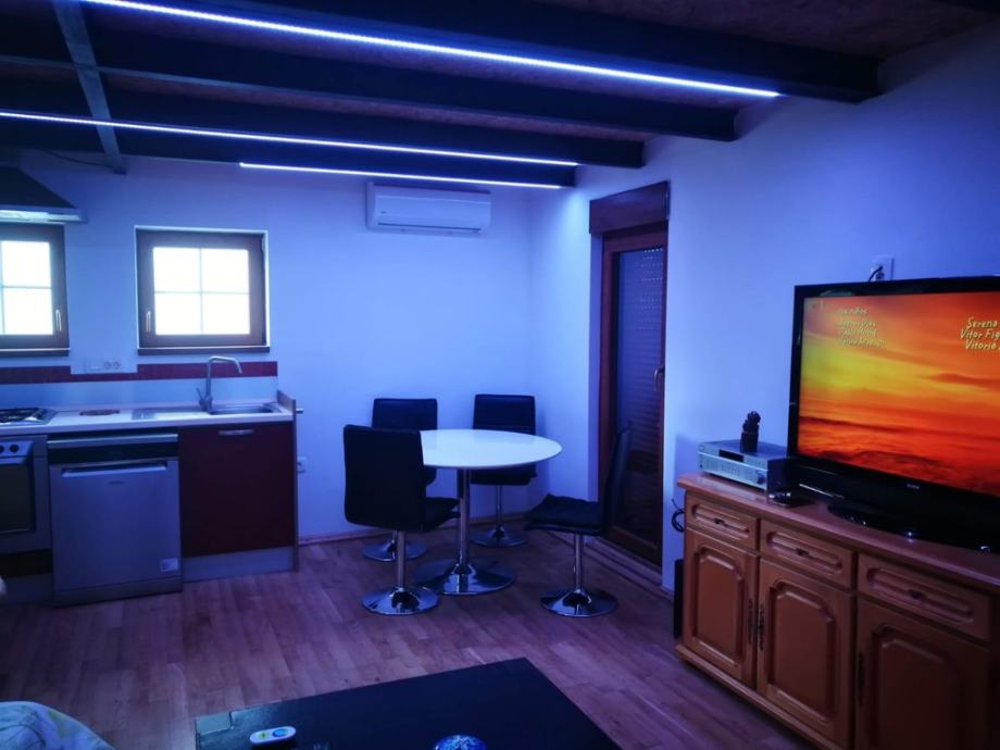 Stan je opremljen hidromasažnom kadom, finskom saunom, 2 televizora, eduro klizni ormari, posuđe, posteljina...
