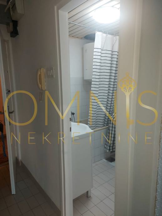 Iznajmljuje se uređen i potpuno namješten jednosoban stan površine 36,88 m2 na 10. katu nebodera s liftom, u mirnom dijelu Donje Vežice.
