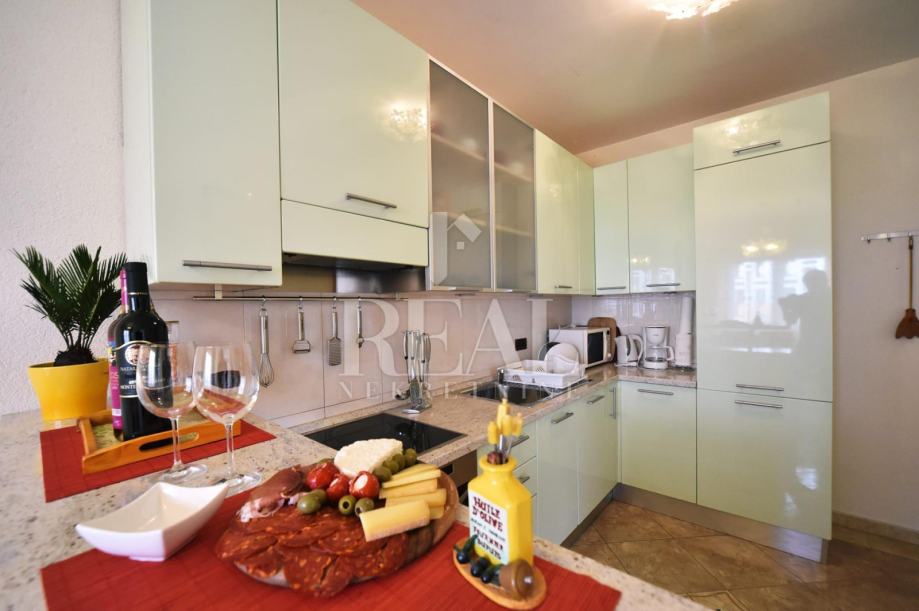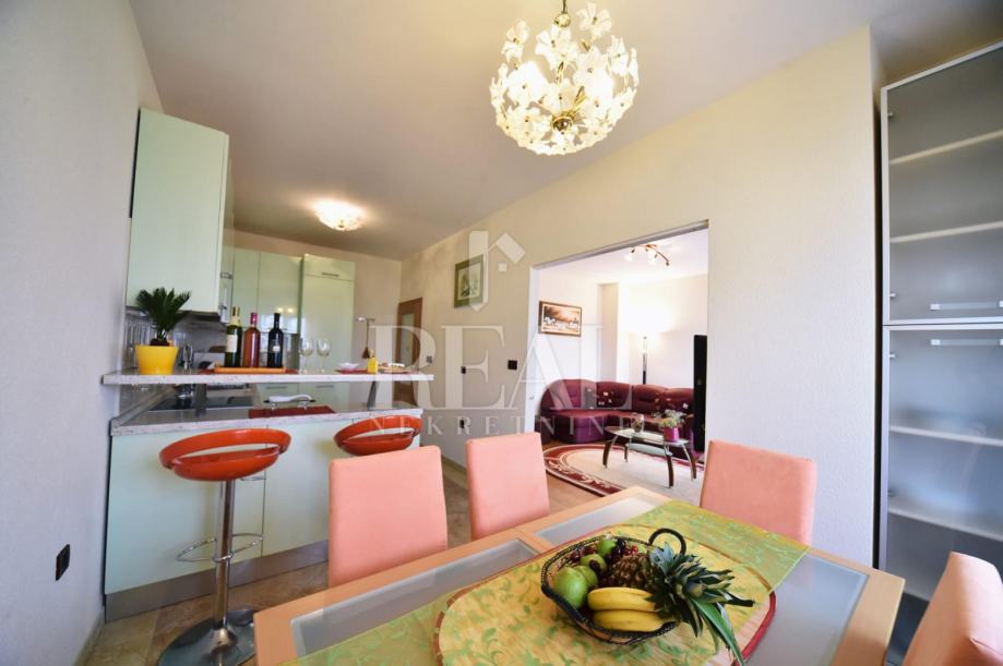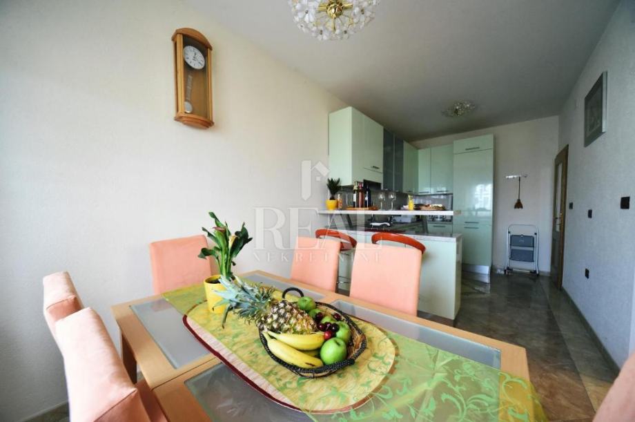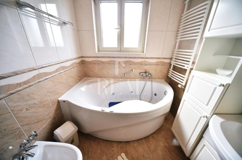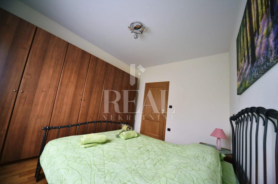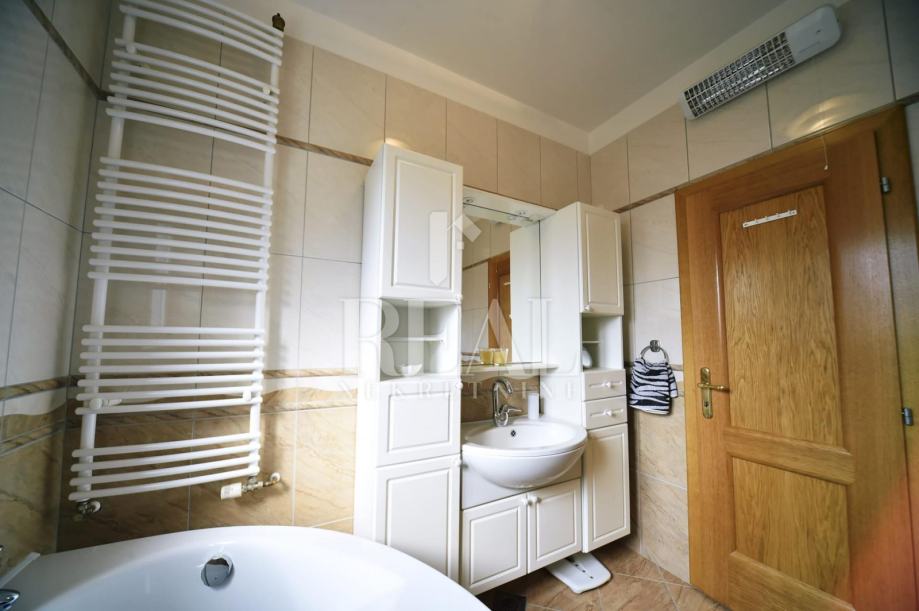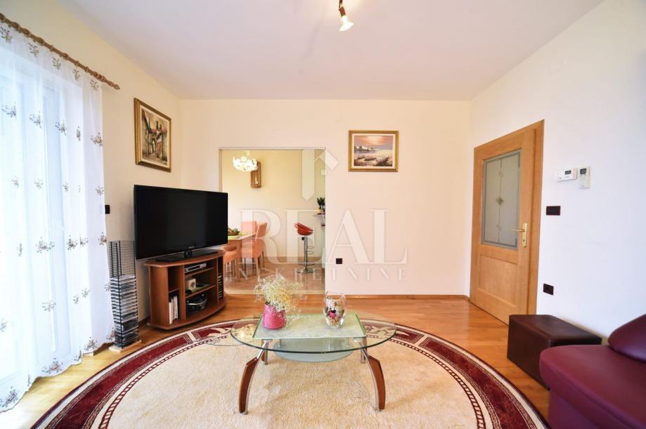Iznajmljujemo u urbanoj vili na Hostima komforan stan koji se sastoji od 3 spavaće sobe ili po potrebi spavaće + radne sobe s obzirom da je soba bez namještaja, dvije kupaone ( jedna ima jacuzzi a jedna tuš kabinu), ostave, dnevnog boravka te kuhinje povezane s blagovaonom iz koje se izlazi na balkon. Stan je kompletno namješten i opremljen svim električnim uređajima te posuđem. Uz stan budući najmoprimci imaju na korištenje i garažu u suterenu zgrade. Zgrada se nalazi u mirnoj ulici u čijoj se blizini nalazi priključak za autocestu, Interspar na Rujevici, stadion NK Rijeke, autobusna stanica te drugi sadržaji. Iznajmljuje se dugoročno poslovnim ljudima ili firmi. Polog se plaća u visini najamnine. Kućni ljubimci nisu dozvoljeni.