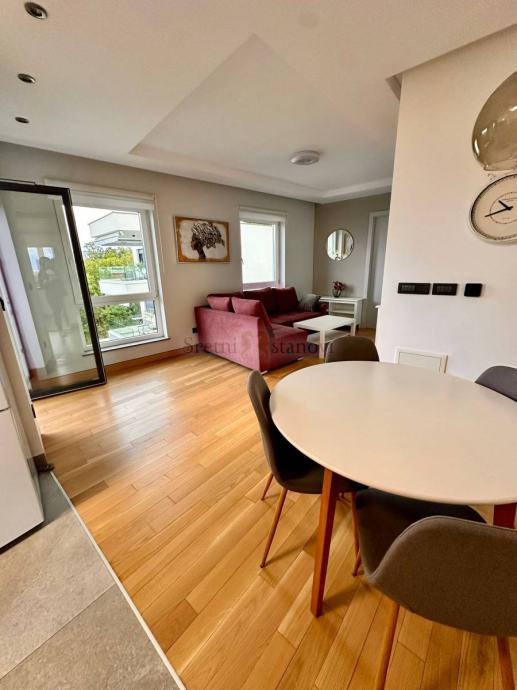 Moderan , lijeoo uređen i namješteni stan u novogradnji u Kostreni. U stambenoj je zgradi na prvom katu, a sastoji se od jedne spavaće sobe, kuhinje s blagovaonom i dnevnim boravkom, kupaone te lođe s pogledom. Stan je u potpunost namješten i opremljen svim tehničkim uređajima. Grijanje je podno na struju i klimatizacija za hlađenje i grijanje. Parkirno mjesto u okućnici-jedno, pripada stanu. Sve režije se plaćaju dodatno. Stan u Kostreni se nalazi na odličnoj lokaciji.