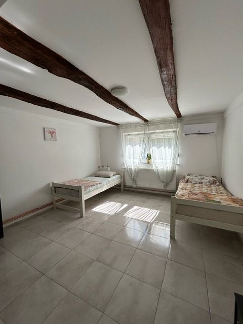 Iznajmljuje se trosobna kuća koja se sastoji od 3 sobe, kuhinje, kupaonice, hodnika i dvorišnog prostora površine 50m2. Iznajmljuje se za radnike- šest kreveta. Soba na katu (površine cca 40 m²). Kuća je opremljena centralnim grijanjem, klima uređajem, novim kuhinjskim aparatima, priborom za jelo, te svim osnovnim potrepštinama za ugodan život. Mjesečni najam je 200 EUR po krevetu zajedno sa režijama. Kontakt i dogovor oko obilaska na broj mobitela: 095 711 01 56.