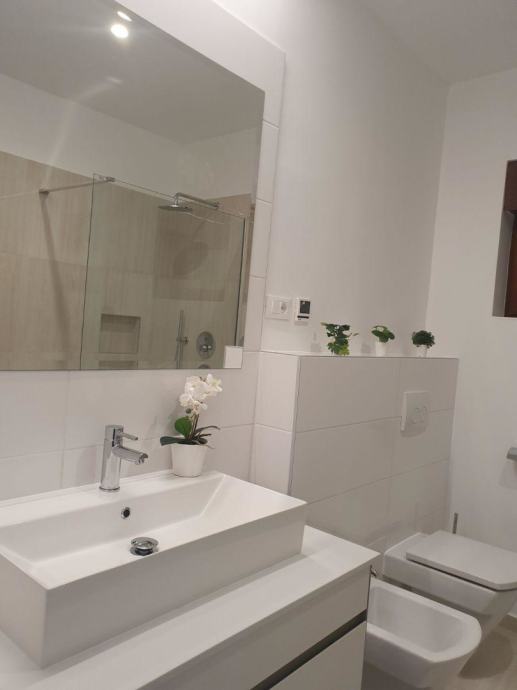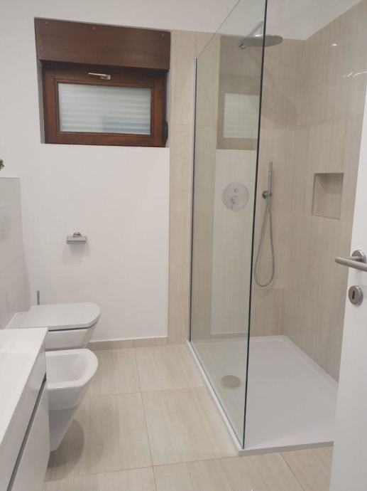 Kuća je luksuzno uređena sa svim novim aparatima i sustavom grijanja i hlađenja, podnim grijanjem u kupaonama, roletama na struju, integriranim centralnim usisavačem, video nadzorom, alarmom, video portafonom..