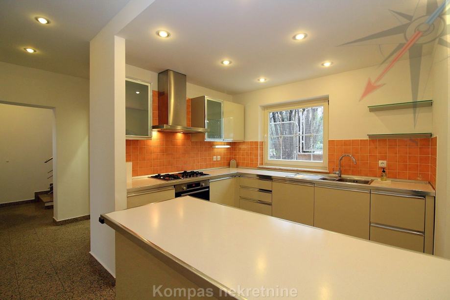U sklopu kuće se nalaze dvije garaže u koju se mogu parkirati ukupno četiri vozila, a ispred garaža je prostor za još dva vozila. Renovirana 2024. godine, iznajmljuje se nenamještena.