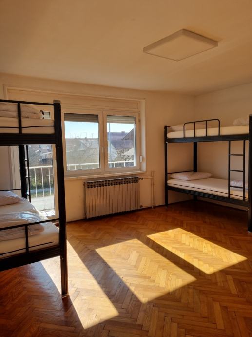 Iznajmljujem kuću i dvorišni stan za radnike u Višnjevcu kod Osijeka. U kući ima dvije sobe za spavanje za do 8 osoba, sa krevetima na kat, dnevni boravak, kupatilo i kuhinja.