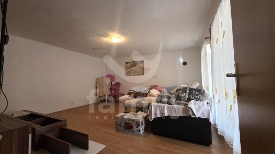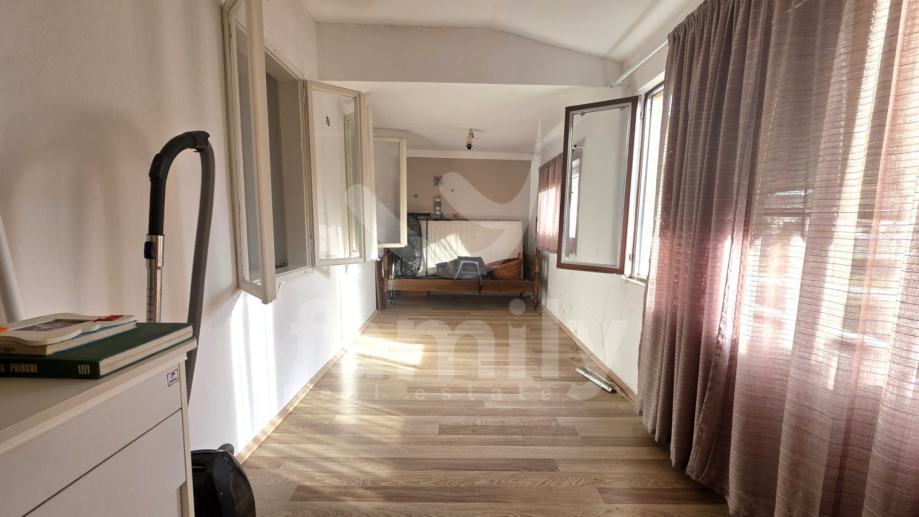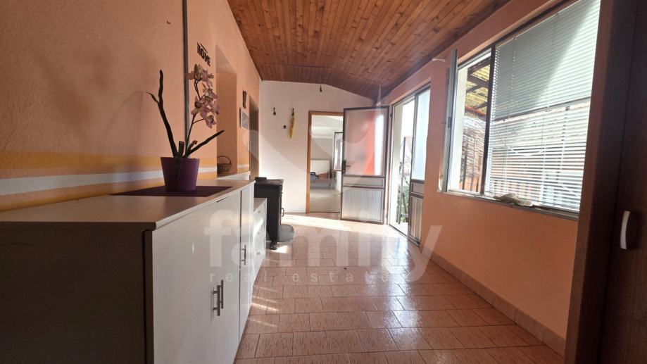 Kuća raspolaže s tri spavaće sobe te može ugostiti do maksimalno 10 osoba. Prostor je funkcionalan i prilagođen dugoročnijem boravku. Stolarija je kombinacija drvene i aluminijske, što osigurava dobru izolaciju i ugodan boravak tijekom cijele godine.