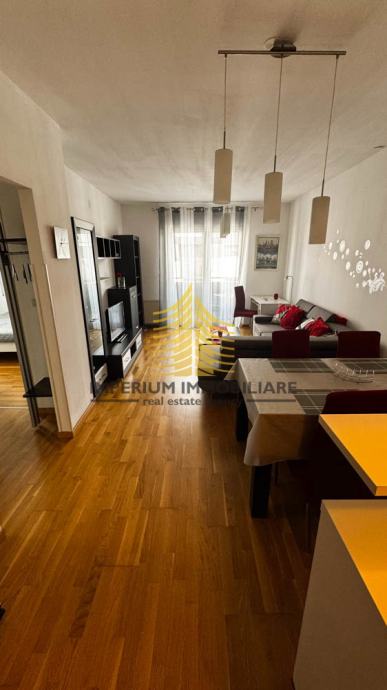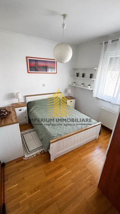 Stan se sastoji od dvije spavaće sobe i opremljen je modernom kuhinjom s aparatima, uključujući perilicu posuđa i perilicu rublja. Dnevni boravak je prostran i opremljen s televizorom, a kupaonica sadrži kadu za dodatnu udobnost. Izlaz na balkon pruža dodatni prostor za opuštanje i uživanje na svježem zraku.