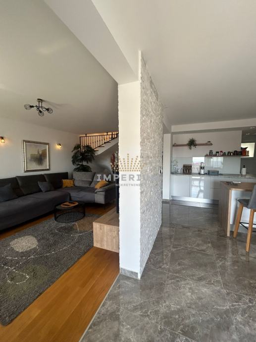 Sadrži: 3 prostrane i elegantno uređene spavaće sobe, veliki dnevni boravak spojen s kuhinjom i blagovaonicom, moderne kupaonice