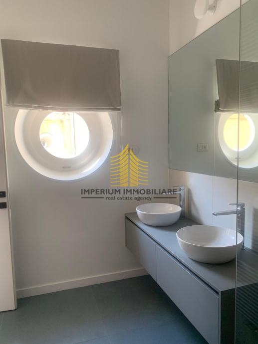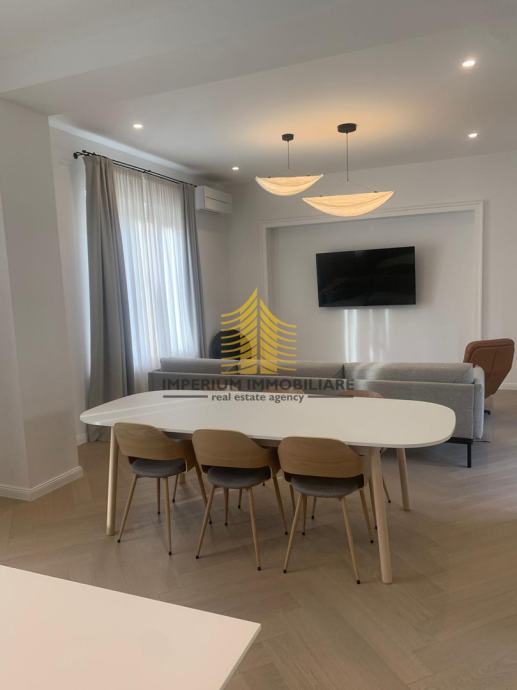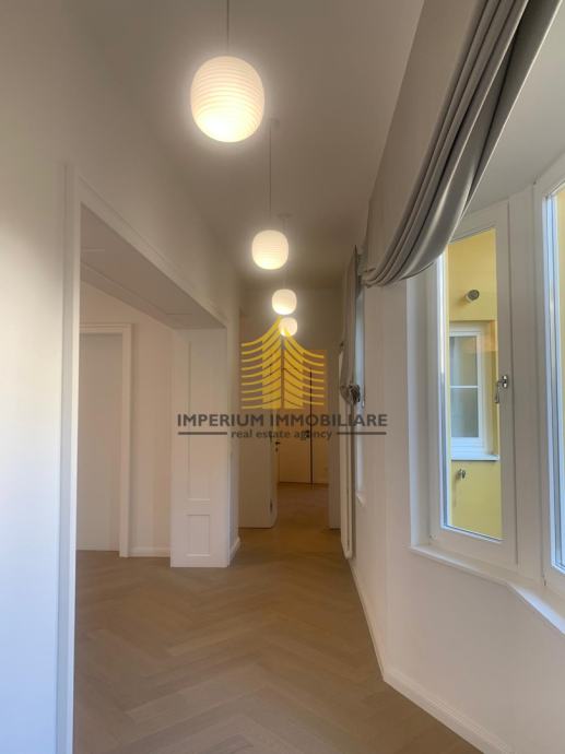 Stan je nedavno adaptiran 2023. godine, što mu daje moderan i dizajnerski stil, istovremeno zadržavajući starogradski šarm. Sastoji se od tri spavaće sobe, prostornog dnevnog boravka te balkona koji pruža ugodan prostor za opuštanje. Orijentacija stana na istok i zapad omogućava prirodnu svjetlost tijekom cijelog dana, čineći interijer svijetlim i ugodnim.
