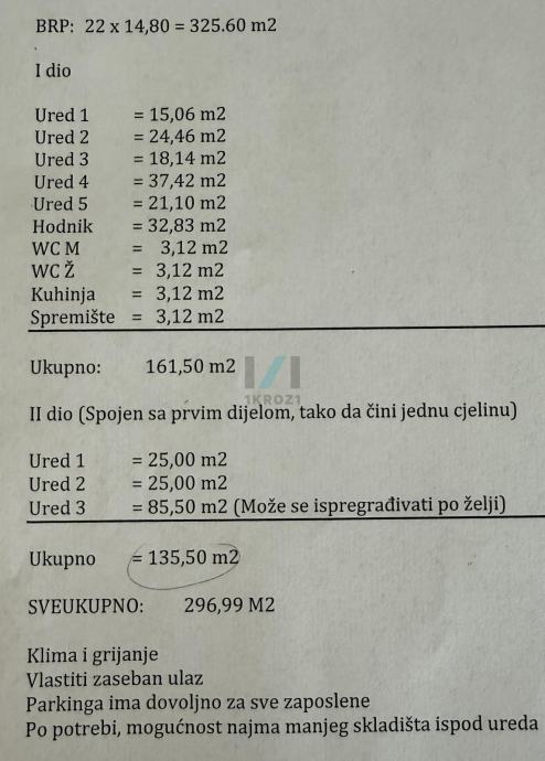 Zakup, ured, poslovni prostor, 297 m2, uredi, 9 odvojenih prostorija, potpuno uređeni, mirno okruženje, parking ispred zgrade. U cijeni od 10 €/ m2 uključene i režije. Odlična povezanost sa poslovnim okruženjem u Radničkoj ulici i aerodromom Franjo Tuđman.