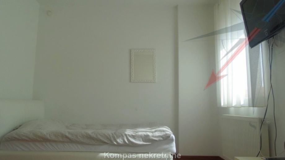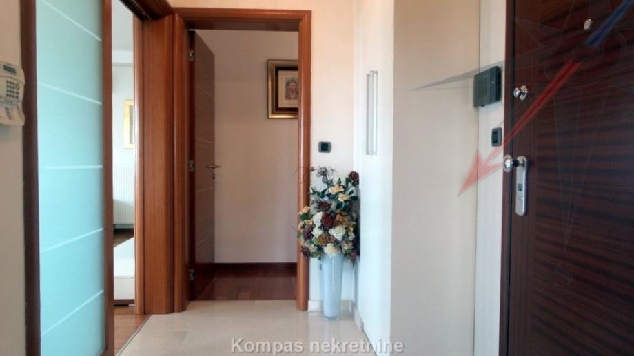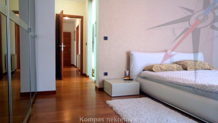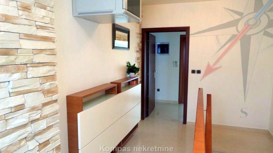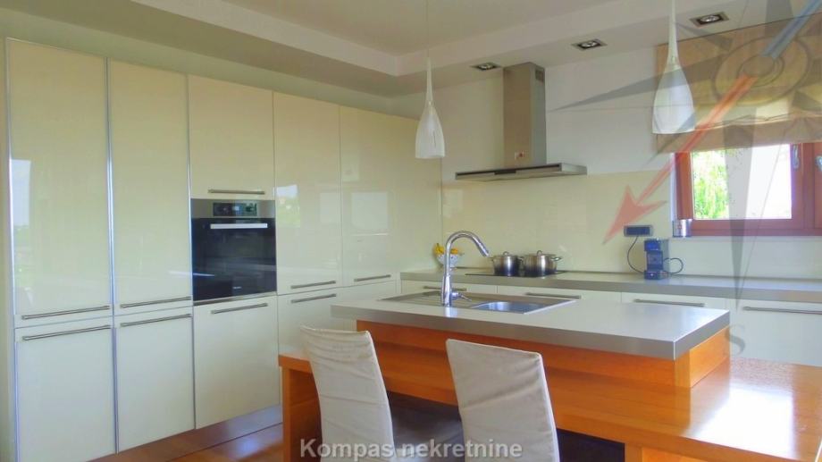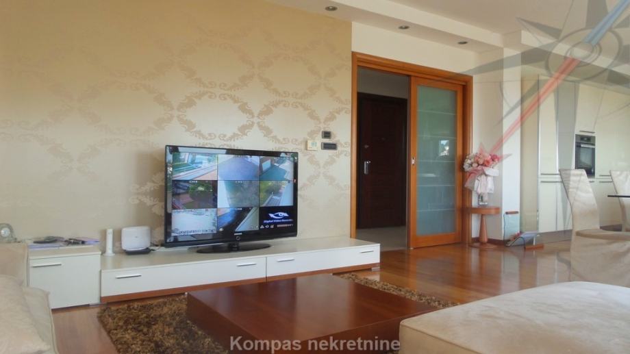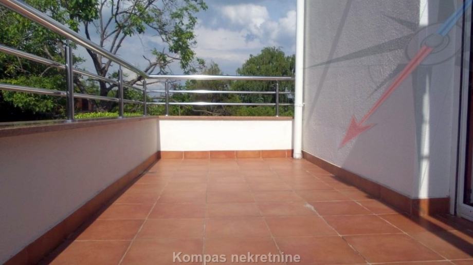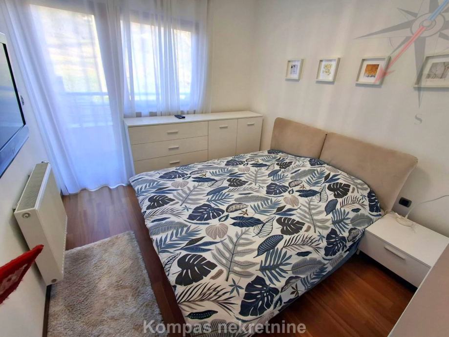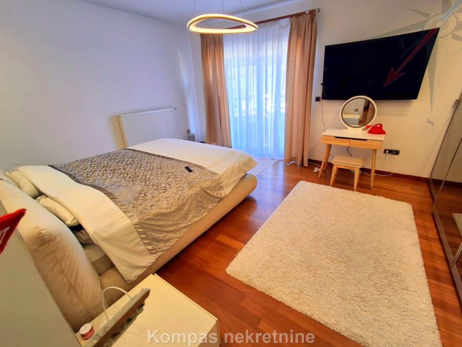 Modernly furnished 4-room penthouse (115 m2), Šestine. It consists of a large living room connected to the kitchen, three bedrooms, two bathrooms. The living room has a balcony on the south side, with a movable awning, two bedrooms have balconies.