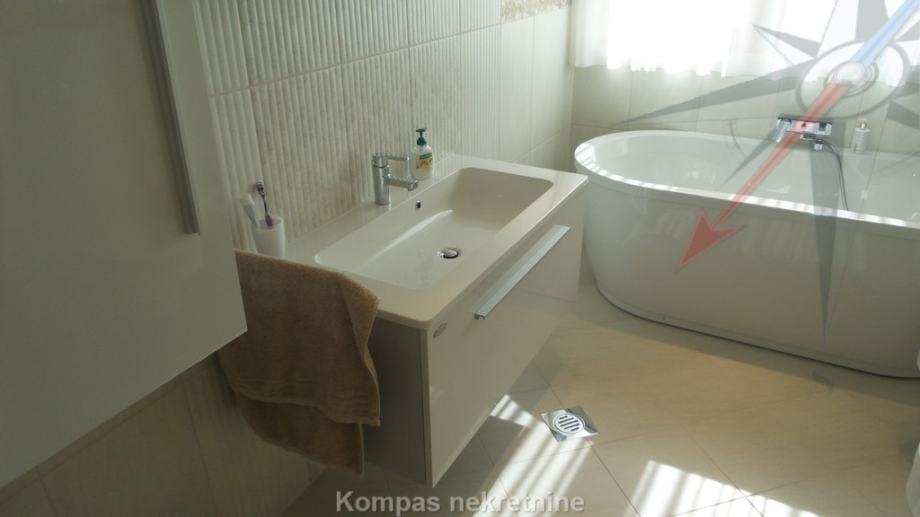 The apartment has a garage of 15 m2 and a parking space in the yard. Garages and a yard fence open with a remote control. Located in a dead end street, surrounded by greenery, with a beautiful view of Šestine.