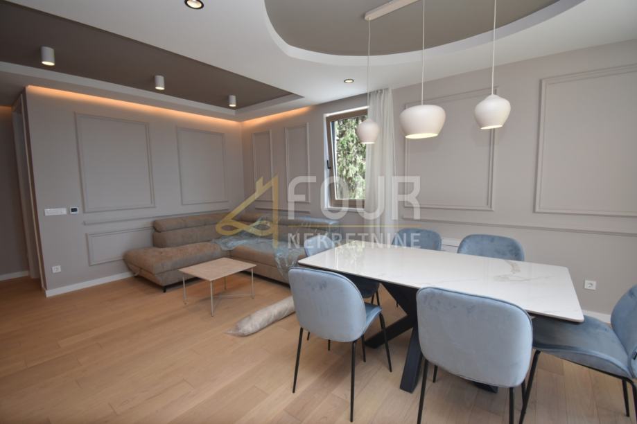 Interijer stana čine ulazni hodnik, prostrani dnevni boravak s bio kaminom, blagovaonica i potpuno opremljena kuhinja s izlazom na balkon.