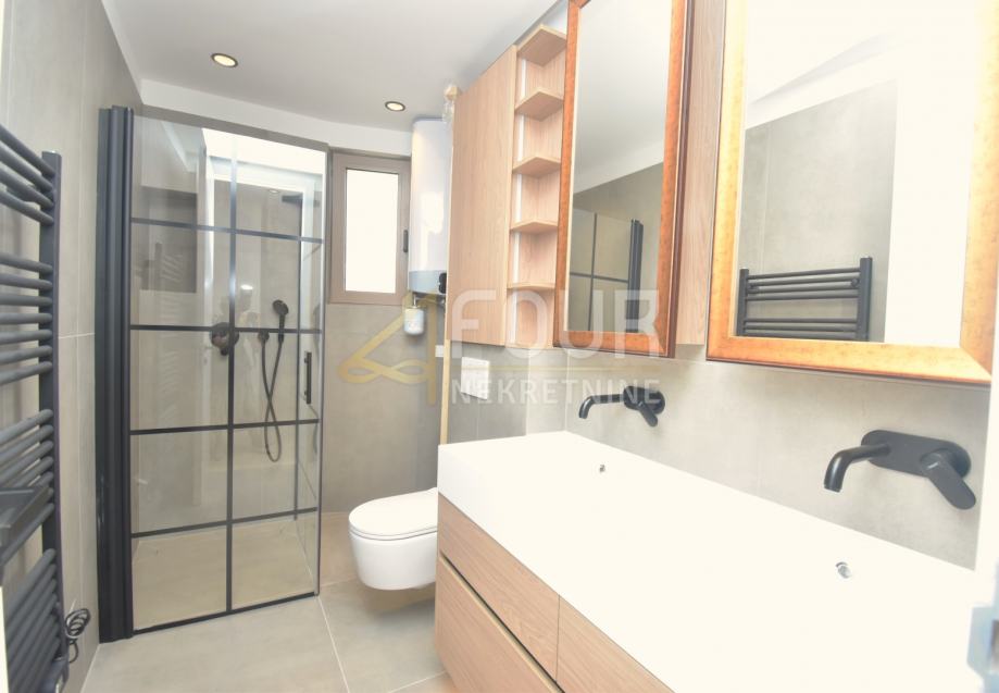 Opremljen je suvremenim tehničkim i energetskim rješenjima: dizalica topline, klima uređaj, aluminijska stolarija, električne rolete, parket, protuprovalna vrata, video nadzor te optički internet.