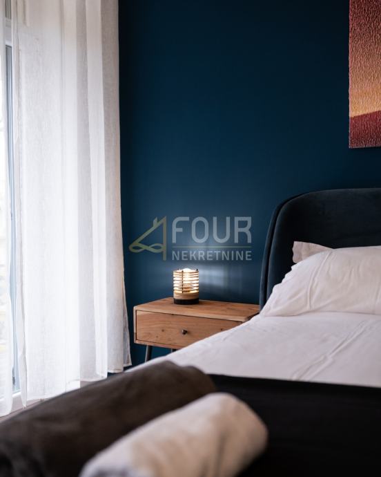 Iznajmljuje se moderan stan površine 100.07m2, koji u naravi ima 115m2, smješten u blizini mora, svega 350 metara od obale!