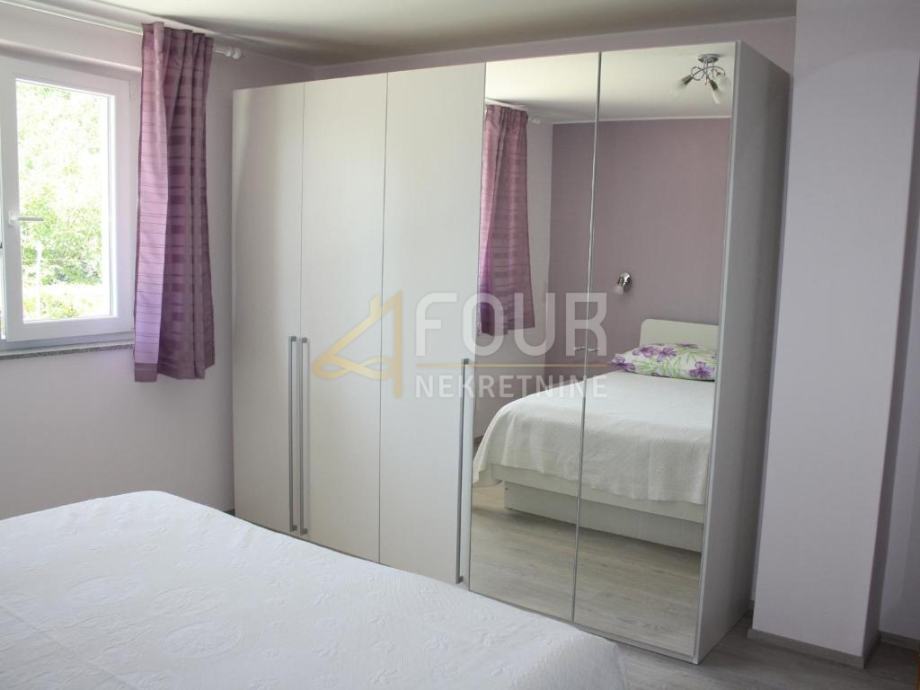 Sastoji se od dvije spavaće sobe – jedna s bračnim krevetom, druga manja za jednu osobu – te dnevnog boravka i odvojene kuhinje s blagovaonicom. Kupaonica je kompletna, a dodatni WC je predviđen za goste. Uz stan dolazi i vanjsko parkirno mjesto.
