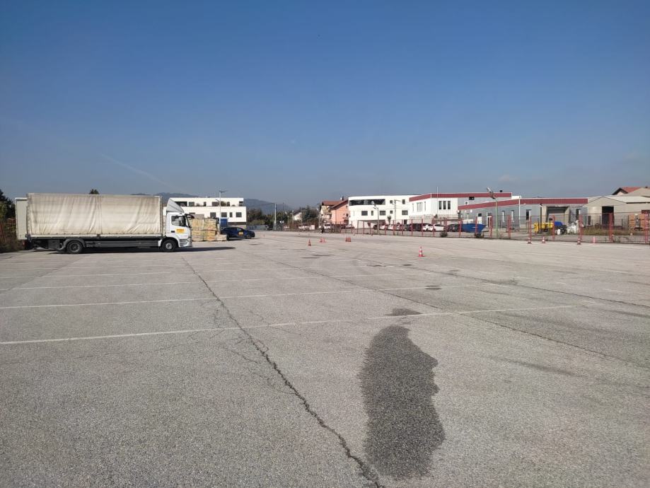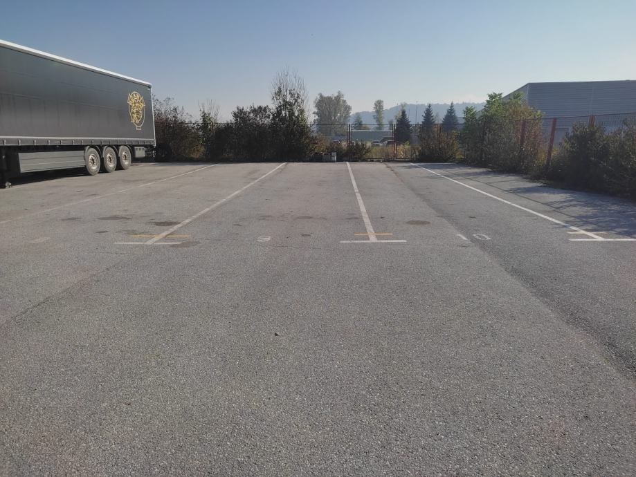 1) 1.000 do 5.000 m2 asfaltiranog prostora, ocrtano, ograđeno, pogodno za parking šlepera. Parkirno mjesto 14 x 3 m (šleper) - cijena je 250 eura mjesečno. Za 3 šlepera i više ide popust od 10%.