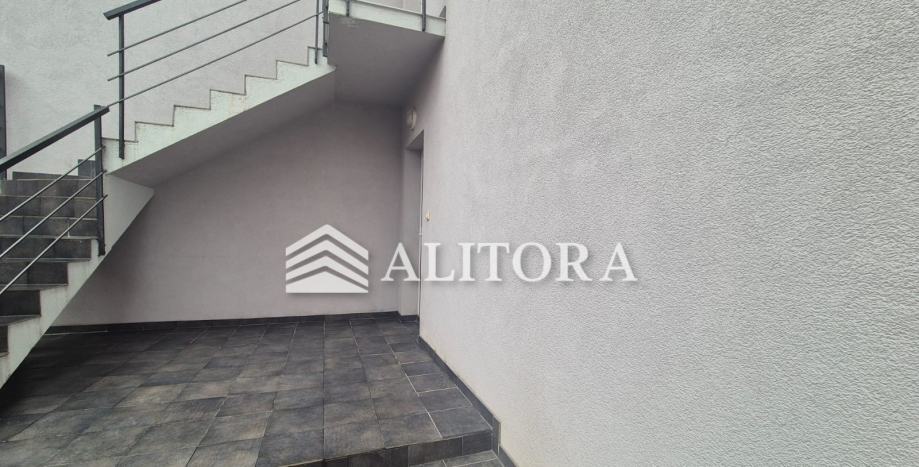 Stan ima 68 m² stambenog prostora i sastoji se od hodnika, dnevnog boravka s kuhinjom i blagovaonicom, dvije spavaće sobe, kupaonice te manje ostave. Posebna vrijednost ove nekretnine je vlastita terasa na koju ima pristup isključivo ovaj stan, dok se ostatak dvorišta koristi zajednički.