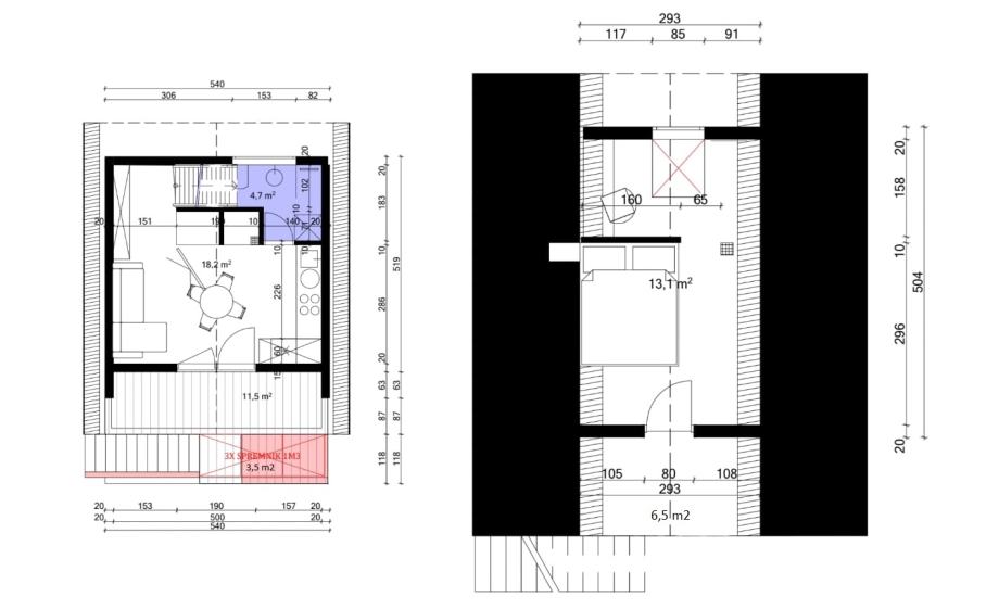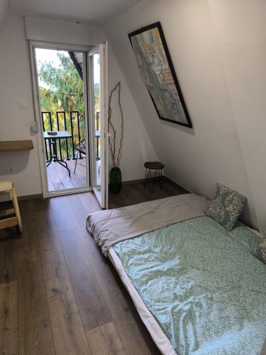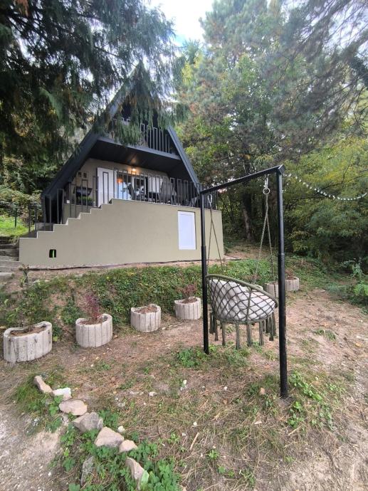 Iznajmljuje se potpuno adaptirana i opremljena A-frame kuća ukupne površine od ~50 m2.