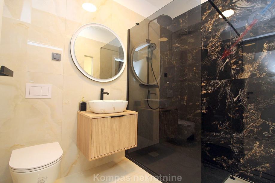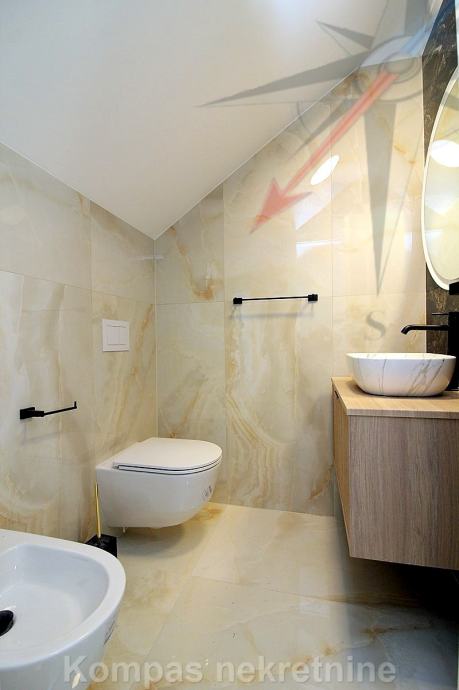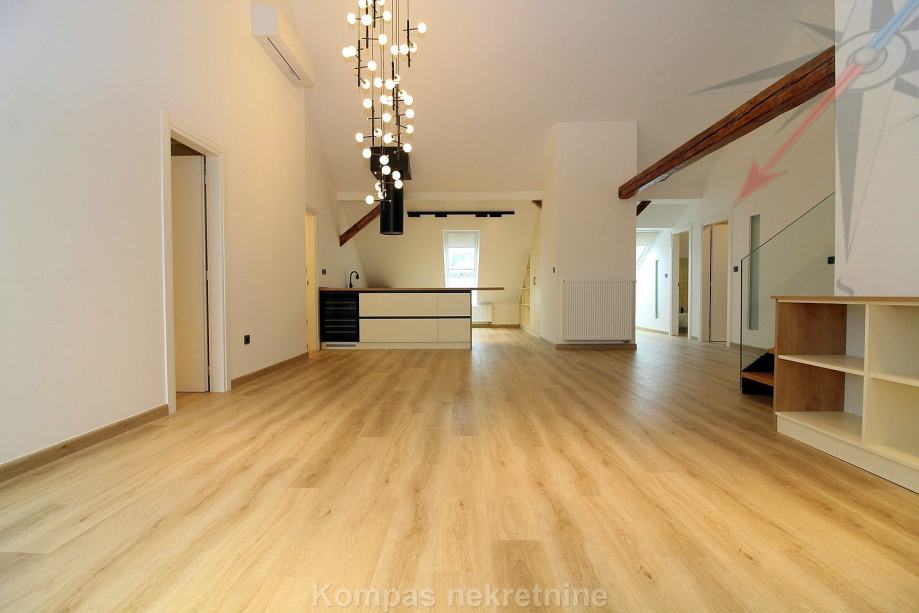 Ima nove instalacije, mogućnost optičkog interneta, klima uređaj od 8 kW, plinsko grijanje, novu kuhinju i kućanske aparate. Sav namještaj je rađen po mjeri. Stubište je renovirano i uredno. Vlasnik traži tri pologa i solemnizaciju ugovora za najam.