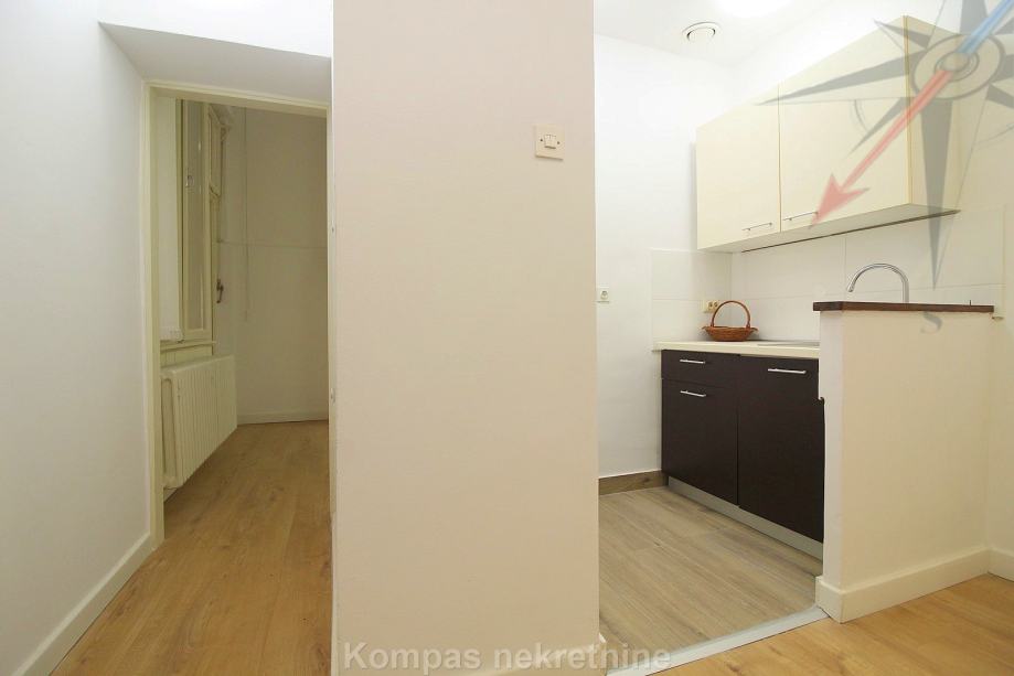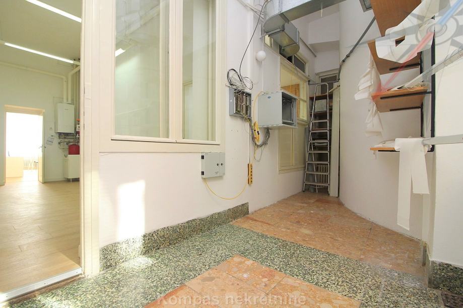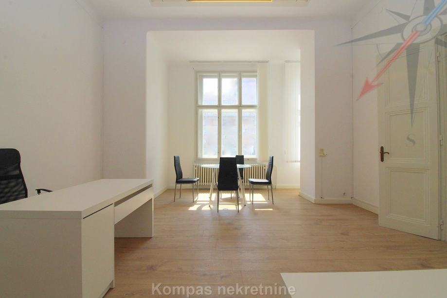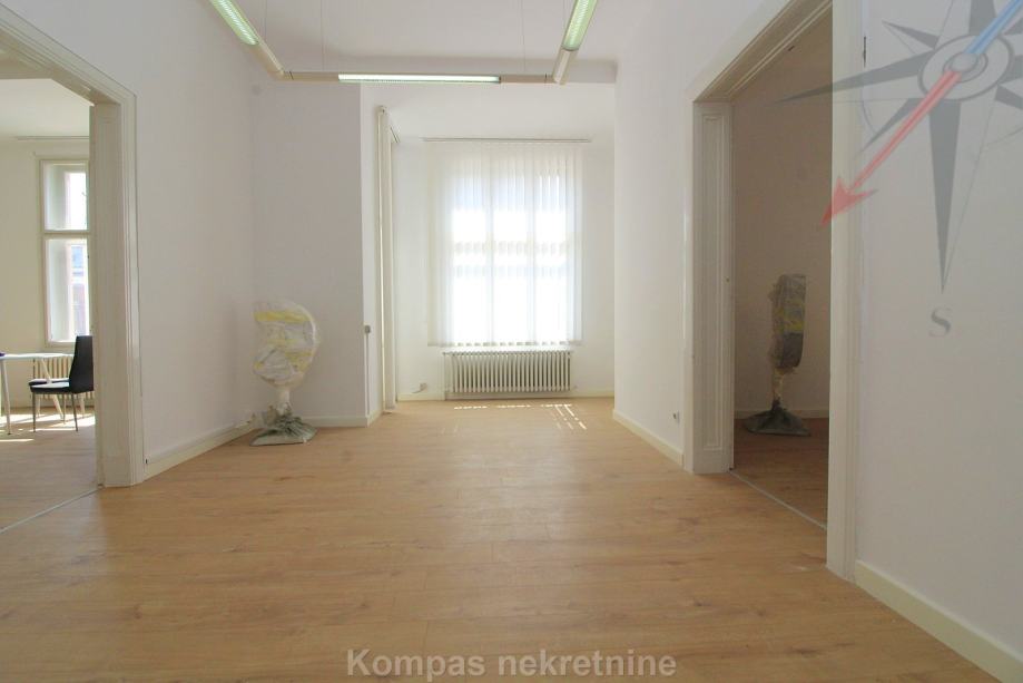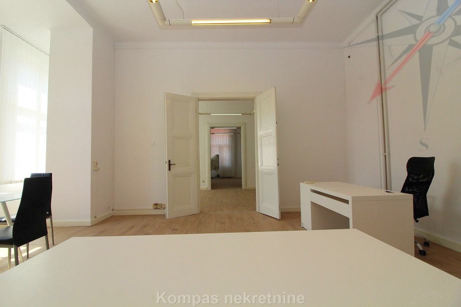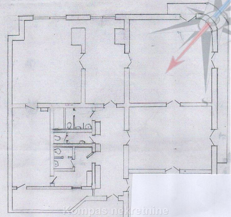 Unfurnished 5-room apartment (180 m2) on the first floor of a residential building, Trg bana Jelačića. It consists of an entrance area with built-in wardrobes, kitchenette, five rooms, bathroom, toilet, balcony, storage in the basement. It has security doors, intercom, optical Internet, air conditioning, gas heating, IT network. The apartment is located in the immediate vicinity of public transport and all facilities of the strict city center.