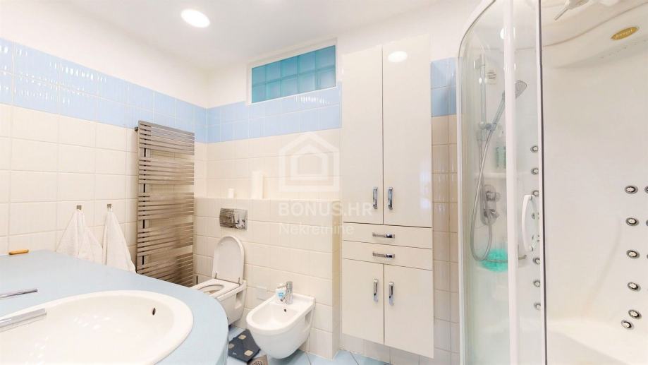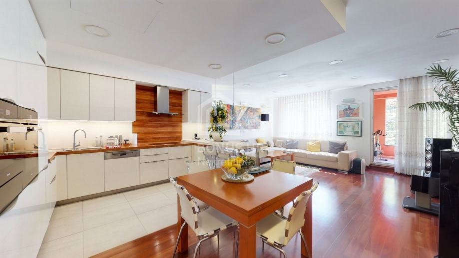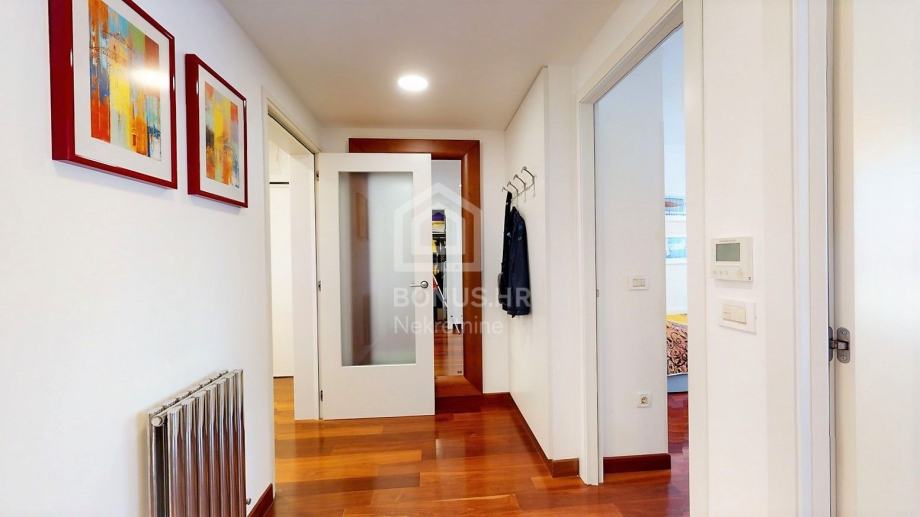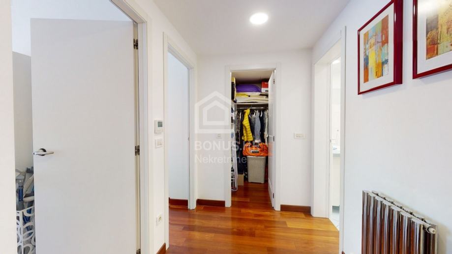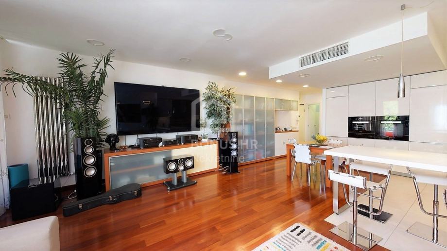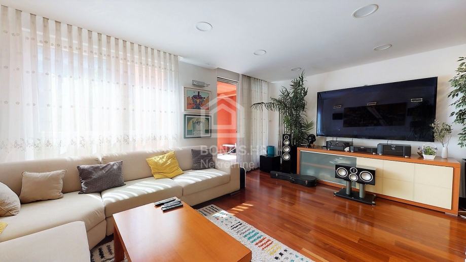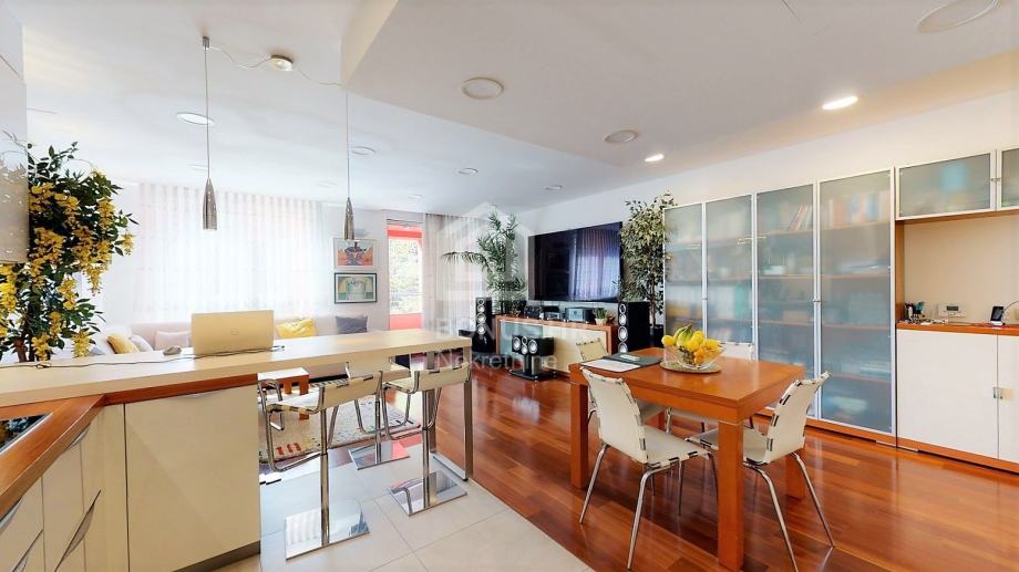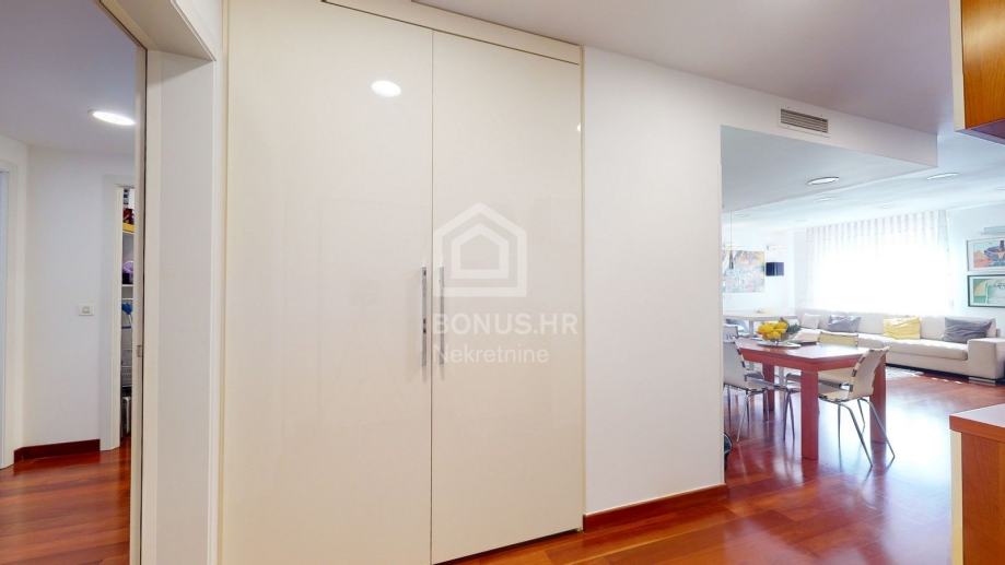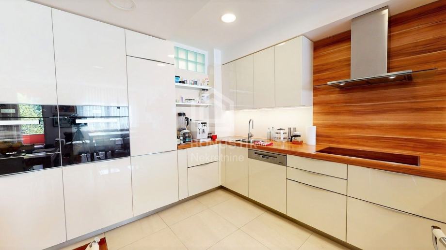 Popis opreme:• Valliant Etažno plinsko grijanje i priprema tople vode• Mitsubishi Inverter klima uređaj sa dvije zone grijanja / hlađenja (dnevni boravak – spavaće sobe - unutarnje kanalne jedinice)• Video-nadzor te parlafon, optička veza za internet IPTV,• DOLOMITE sanitarije• HANS GROHE / Villeroy & Bosh slavine• IPE LAPACHO MAHAGONY masivni parket 20 mm (vrhunski parket sa Certifikatom Class 1 UBC - Brazil)• JAKUZI sa saunom, masažom & Hi-FI• MARAZZI pločice• THYSSEN PVC stolarija sa AGC Laminated Glass 6mm+14mm+4mm Low-e (K=0,9 W/m2/K )• RHEINA Nerox stainless steel radijatori 50 g. garancije + Valliant termo-regulacijski ventili• ROLTEK – Elektro dizanje/spuštanje roleta (daljinsko upravljanje)• AURORA - kompletna dimmabilna LED rasvjeta (DALI protocol) - (klasa A+++ -)• ARTEMIDE COPERNICO Wall LED indirect lights (DALI protocol) -(klasa A+++)• Infrastruktura stana optika te UTP Cat. VII - Ethernet 20 GB & HI-FI/AV• SONY 85“ LED 4K 3D TV – dnevni boravak• SAMSUNG 55“ LED 4K 3D TV – spavaća soba• MIELE - kompletna bijela tehnika• NOLTE – kuhinja• CALLIGARIS – namještaj dnevni boravak, spavaće sobe• MOMA Design – namještaj kupatila