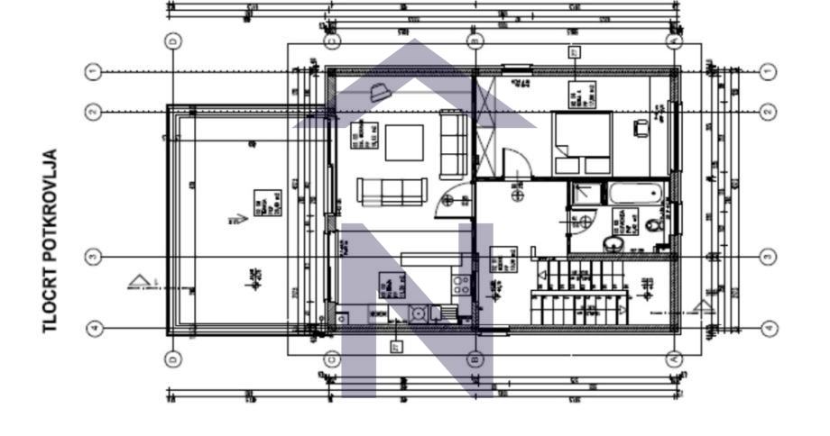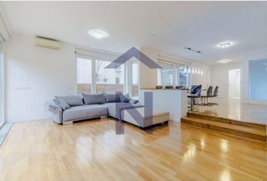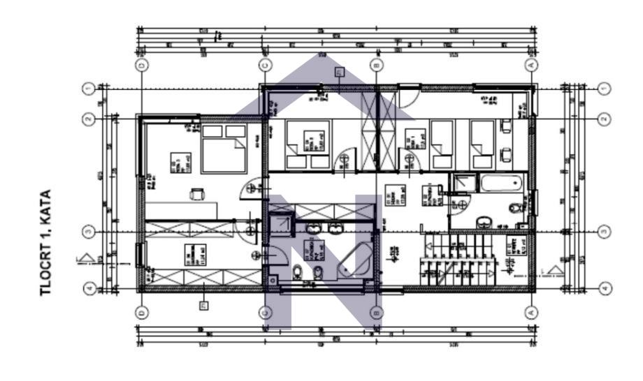 Podzemna etaža 100 m2 sastoji se od garaže za četiri automobila, prostorije s kuhinjom i vešeraja s toaletom. Prizemlje se sastoji od velikog dnevnog boravka povezanog s prostorom za blagovanje kao open space prostor, kuhinje, toaleta s predsobljem, loggie i velike terase. Prvi kat se sastoji od hodnika, dvije spavaće sobe, velike spavaće sobe s garderobnom sobom i kupaonicom i kupaonice s toaletom. Drugi kat se sastoji od drugog dnevnog boravka s kuhinjom, spavaće sobe, kupaonice s toaletom i terase. Kući prida prekrasan privatni vrt u stražnjem dijelu parcele s roštiljem, garaža u koju stanu 4 automobila + parkirna mjesta ispred.