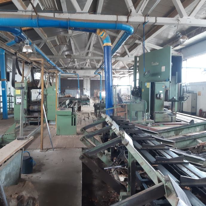Industrijska zgrada-površine 1023 m2 opremljena i u funkciji sa strojevima za proizvodnju elemenata (automatska kružna pila, automatski prikračivać,linija za spajanje drvenih elemenata)