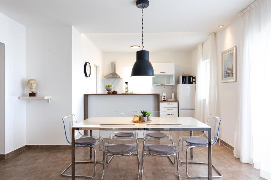 Izdvojen od prometne gužve i vreve grada, nudi mir i privatnost, te opuštanje na terasi s koje se pruža kompletno otvoren pogled na more.