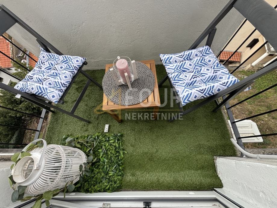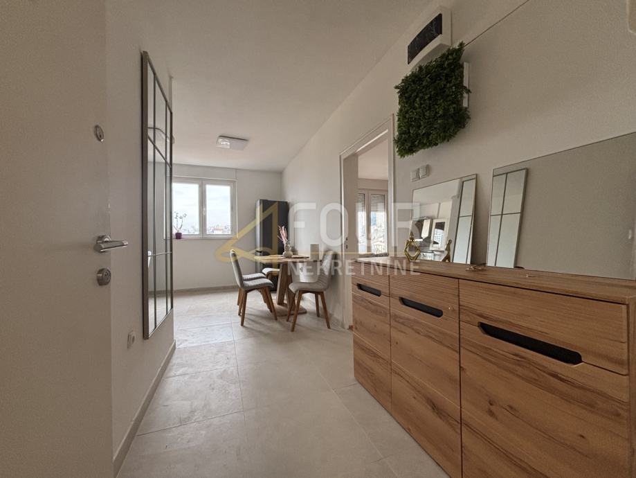 Sastoji se od hodnika, kupaonice, kuhinje s blagovaonicom i jedne sobe. Orijentiran je na jug i zapad, klimatiziran te ima PVC stolariju,. Manji kućni ljubimci su dobrodošli.