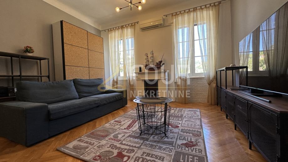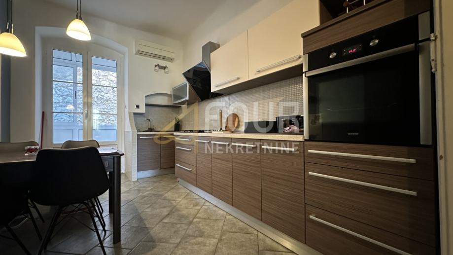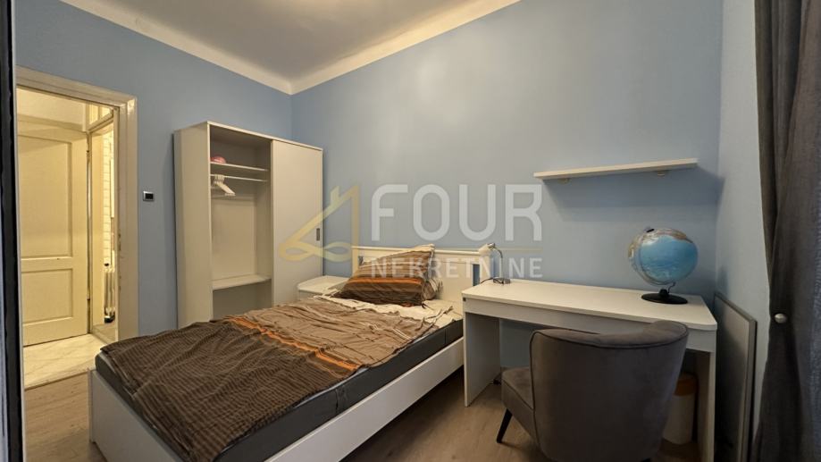 U samom centru Rijeke iznajmljuje se prostran stan površine 75 m2. Sastoji se od dvije spavaće sobe, dnevnog boravka, kuhinje s blagovaonicom, kupaonice, hodnika i lođe od 2,5 m2, a pripada mu i drvarnica u prizemlju zgrade.