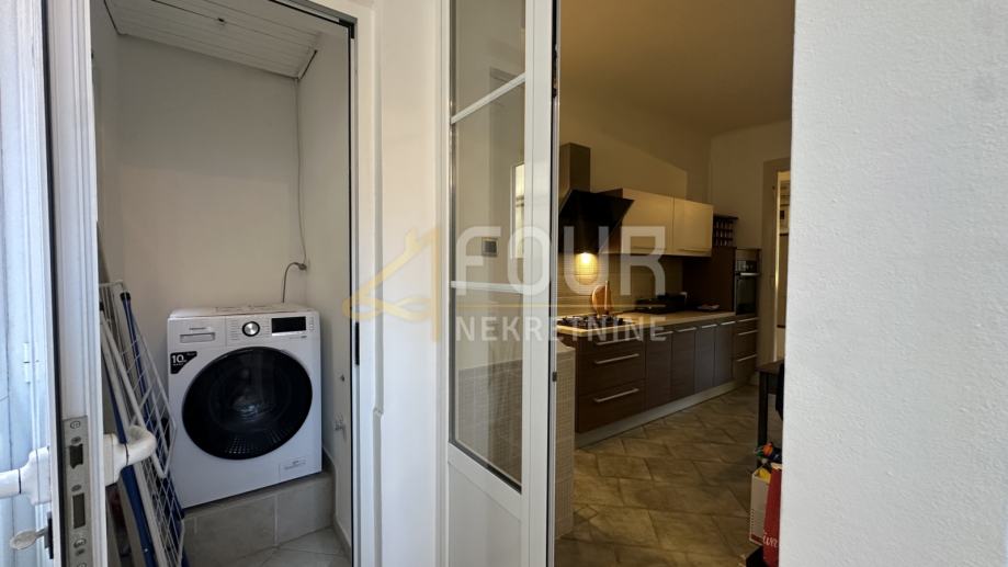 Potpuno je adaptiran prije četiri godine i od tada se redovito održava. Uređen je i namješten s modernim detaljima te je spreman za useljenje. Opremljen je dvije inverter klime, električnim kaminom u dnevnom boravku i podnim grijanjem u kupaonici, dok aluminijska stolarija osigurava dobru izolaciju. U zgradi je postavljen i video nadzor, što dodatno doprinosi sigurnosti stanovanja.