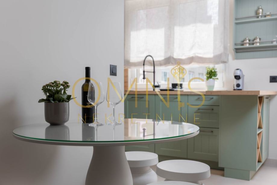 Iznajmljuje se moderno uređen jednosoban stan od 40 m2 na iznimno traženoj lokaciji u samom centru Rijeke, udaljen svega nekoliko minuta hoda od Korza. Stan se nalazi u visokom prizemlju uredne poslovno-stambene zgrade, a kompletno je adaptiran 2025. godine i opremljen novim namještajem, uređajima i visokokvalitetnim materijalima, što prostoru daje suvremen i ugodan karakter.