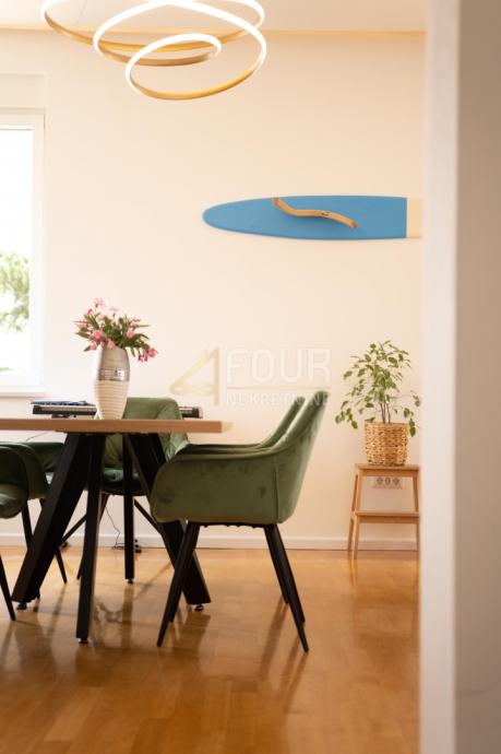 Sastoji se od dvije prostrane spavaće sobe, svaka s vlastitom garderobom, dvije moderno uređene kupaonice, komfornog dnevnog boravka s izlazom na terasu, kuhinje s blagovaonicom i hodnika.