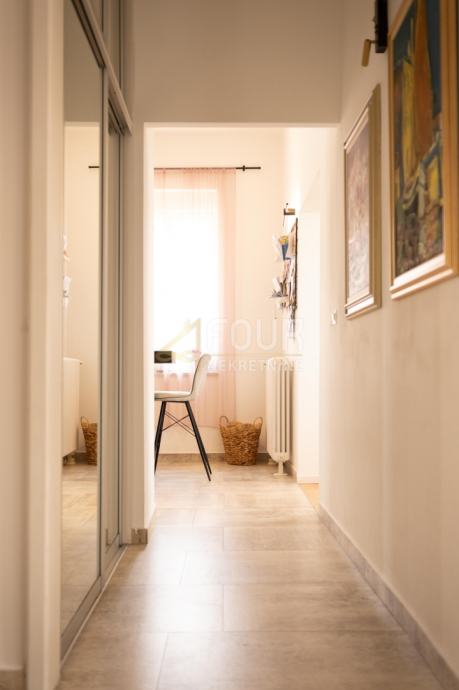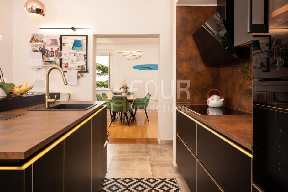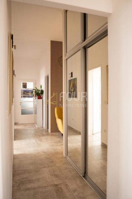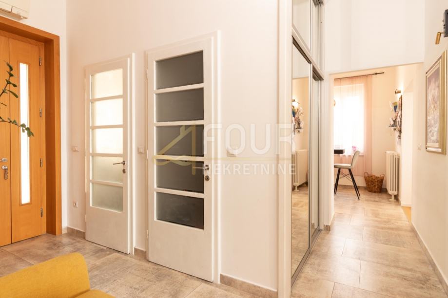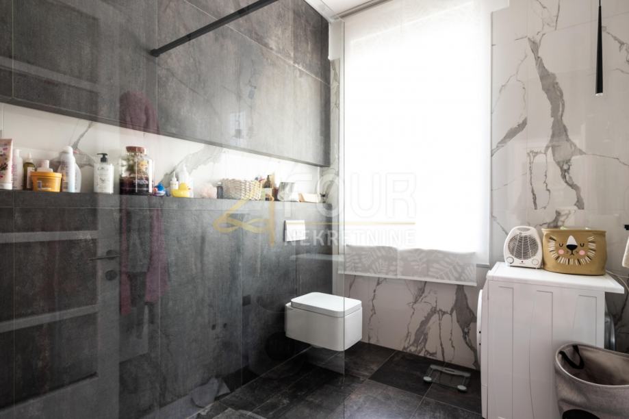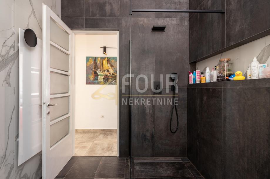 Ova potpuno adaptirana nekretnina prostire se na drugom katu s južne strane, dok se sa sjeverne strane nalazi u razini prizemlja, što omogućuje jednostavan pristup okućnici od 50m2 s roštiljem.