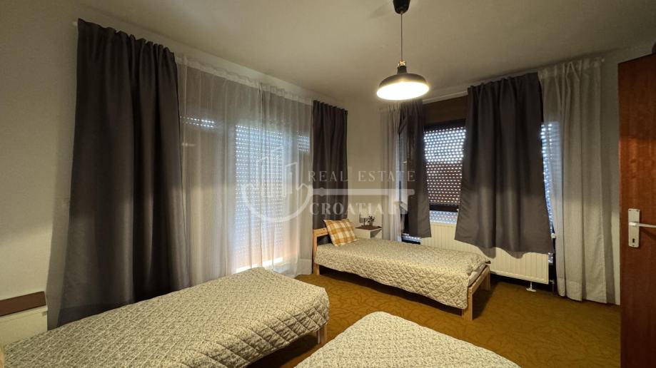 ✅ 2 kupaonice ✅ Prostrano dvorište površine 1708 m² ✅ Dovoljno parkirnih mjesta za više vozila ✅ Cijena: 300 € po osobi mjesečno