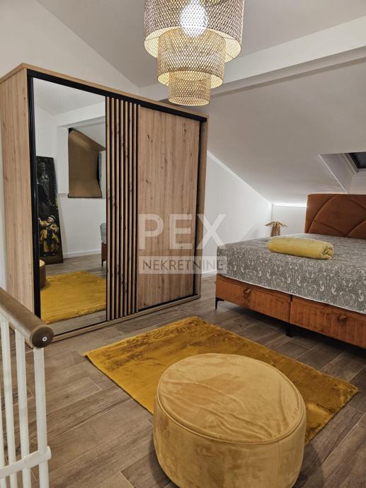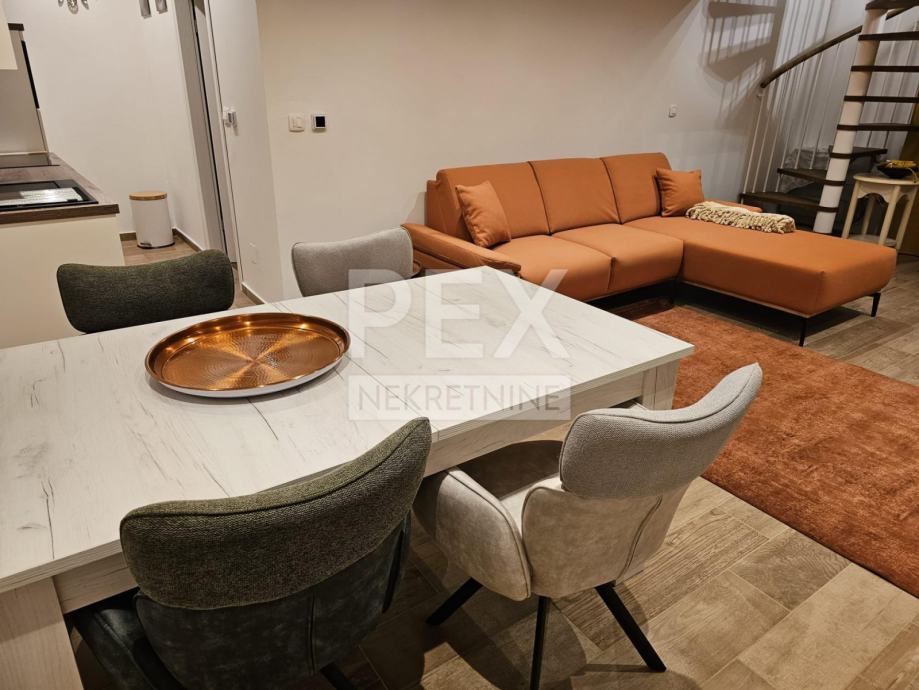 Iznajmljuje se atraktivno uređen dvoetažni stan na izvrsnoj lokaciji u Samoboru. Stan se sastoji od dnevnog boravka s blagovaonom, kuhinje, spavaće sobe na galeriji te kupaonice s WC-om. Stanu pripada i vanjsko parkirno mjesto.