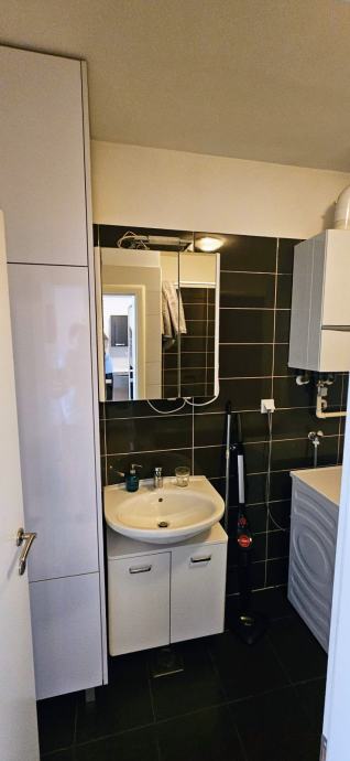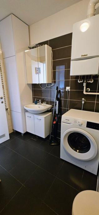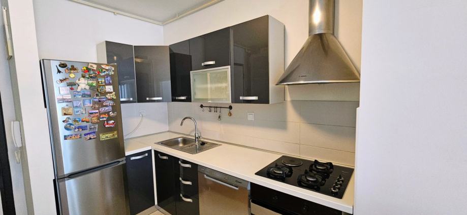 • Raspored: Dnevni boravak s radnim kutkom, kuhinja opremljena perilicom posuđa, plinskom pločom i pećnicom, blagovaonica s proširivim stolom, spavaća soba s dva velika ormara, kupaonica s kadom i 2-u-1 perilicom/sušilicom te balkon.