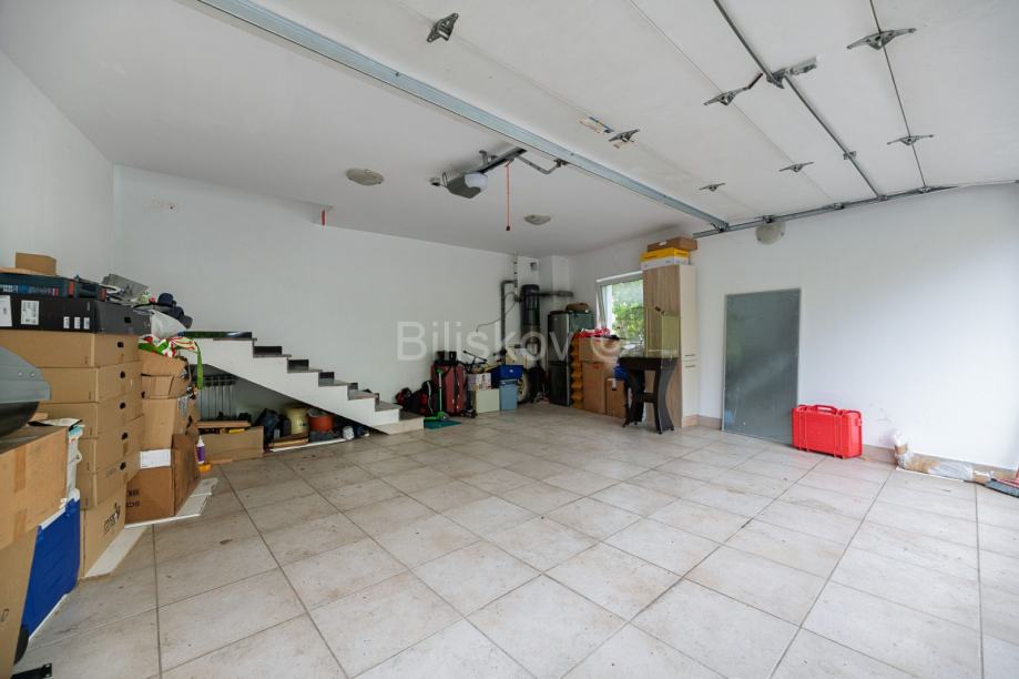 Prvi kat se sastoji od: hodnika, prostrane kuhinje s izlazom na balkon, odvojene blagovaonica, velikog dnevnog boravka s dva izlaza na balkon, spavaće sobe, kupaonice, garaže s dva parkirna mjesta koja omogućuje privatan pristup stanu, unutarnjeg stepeništ.