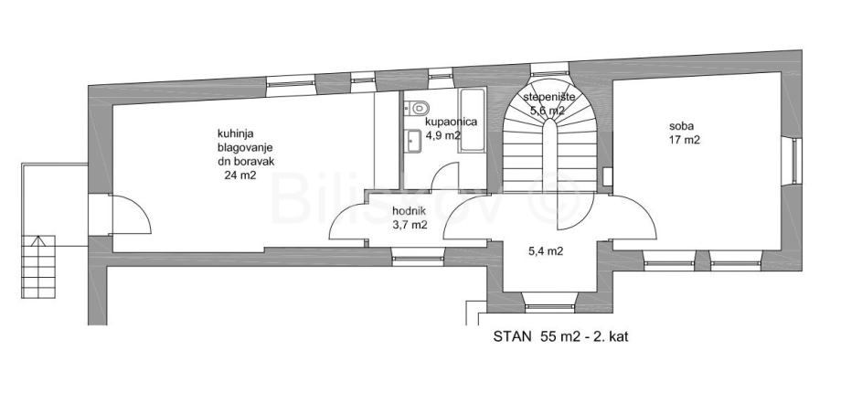 Prizemlje i kat u funkciji su poslovnih prostora.