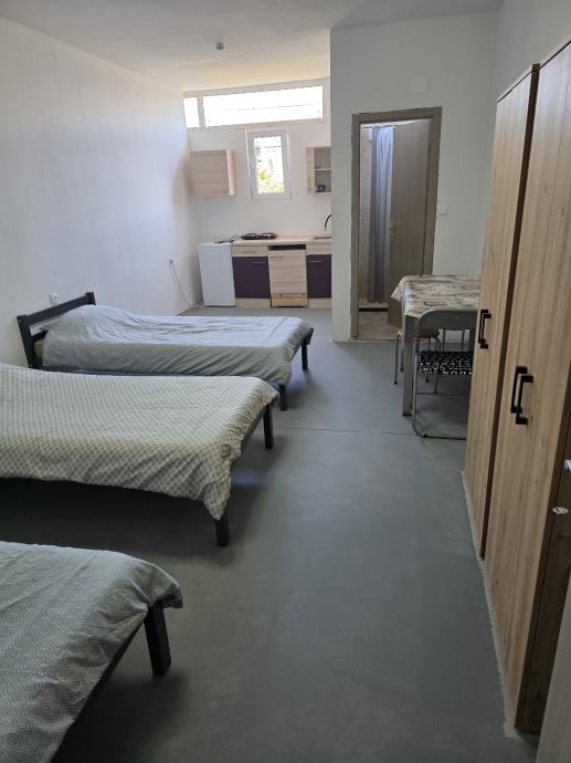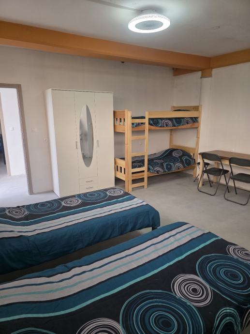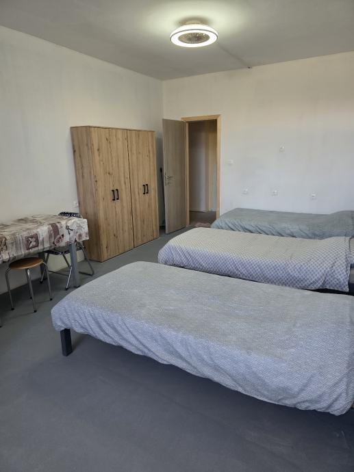 Iznajmljujem stanove i sobe za najam radnika 500+ m2. Jedan stan namješten za više osoba, 5 soba s kupaonicama za 4-7 radnika. Ukupan kapacitet 30+ radnika. Također i kat 400m2. Na Jadranskoj magistrali kod Dvi pumpe PEVEC centar