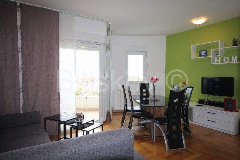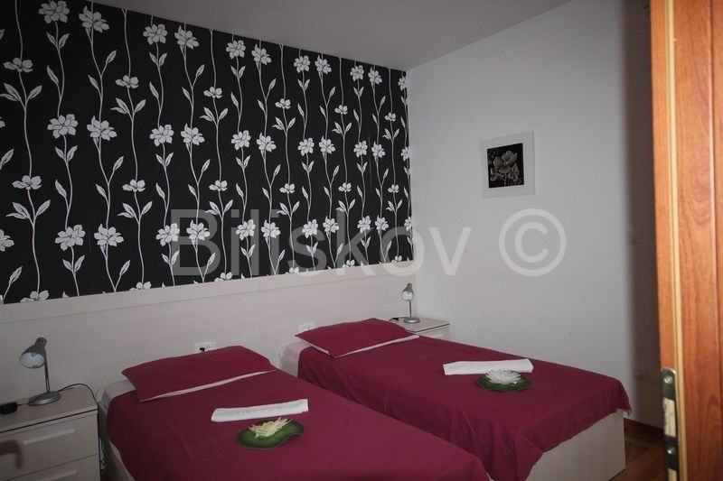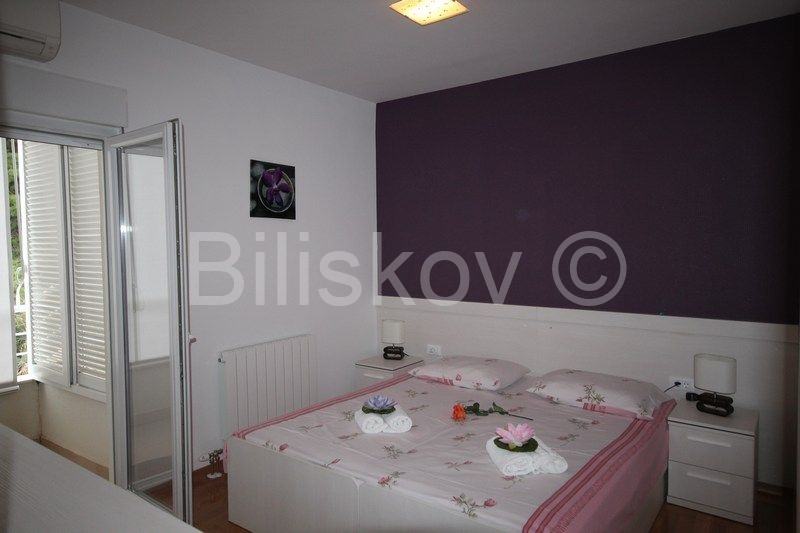 Komforan prekrasan stan, ukupno korisne površine 72m2, smješten na 1. katu stambene zgrade s osiguranim parkirnim mjestom. Sastoji se od dvije spavaće sobe, kuhinje s trpezarijom i dnevnim boravkom, dva kupatila, lođe i balkona. Stan je klimatiziran i kompletno opremljen. dostupan je od 01.10.do o1.05.