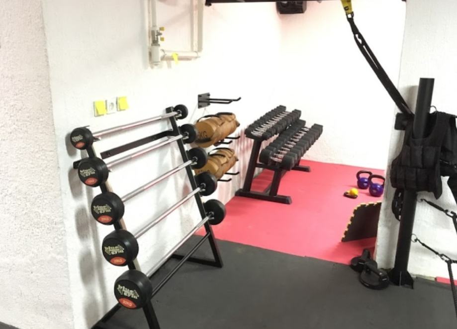 Opremljena kompletno sa opremom za treninge ( boks, 5 boksackih vreca , girje, bugarske vreće, štrik, utezima , Smith mašina, 2 klupice podesive po visini, bučice od 1-40 kg... )