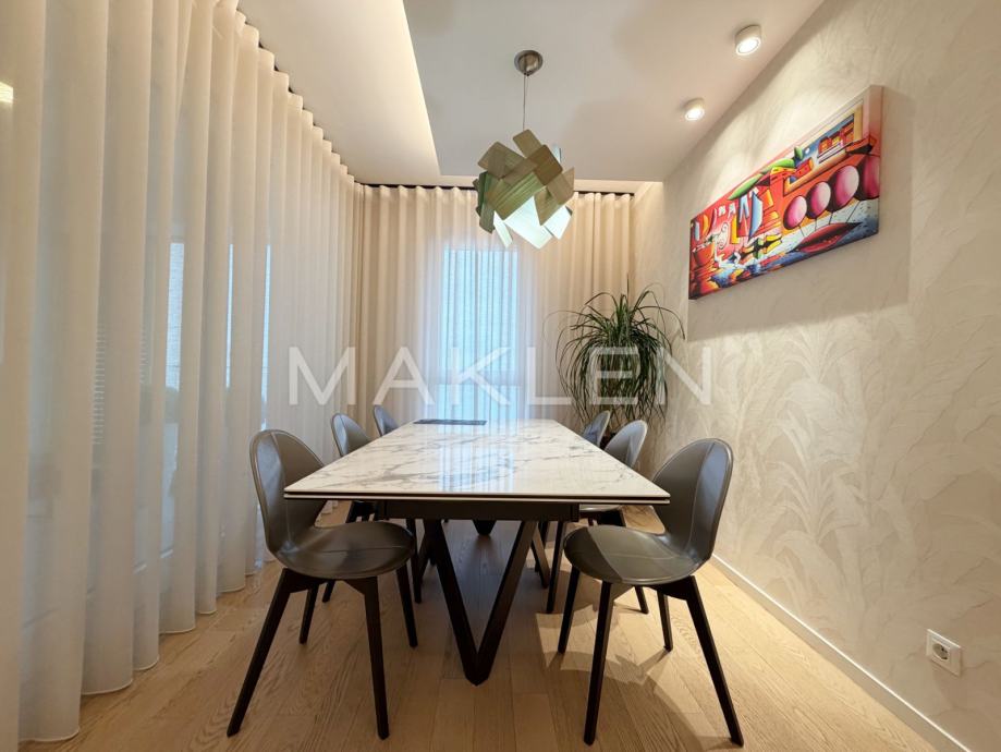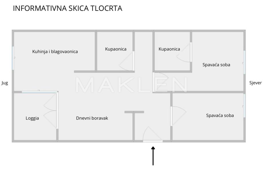 Sastoji se od dnevnog boravka s blagovaonicom i kuhinjom, dvije spavaće sobe,dvije kupaonice, hodnika te loggie.