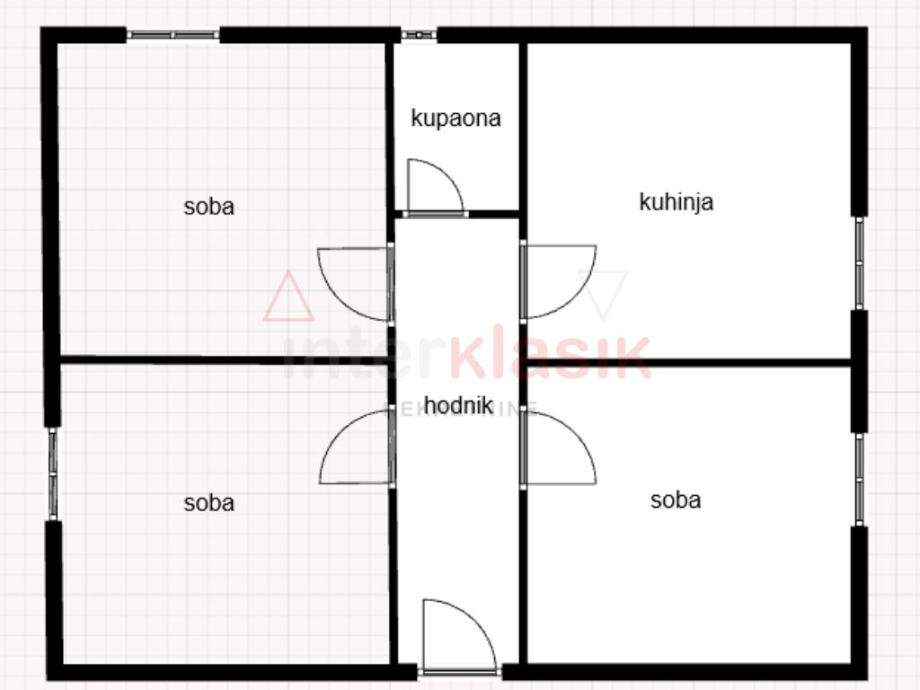 Sastoji se od sobe 1 (14,00 m2), sobe 2 (12,50 m2), sobe 3 (12,30 m2), kuhinje s blagovaonom (14,30 m2), kupaonice s WC-om (3,50 m2) i hodnika (7,00 m2).