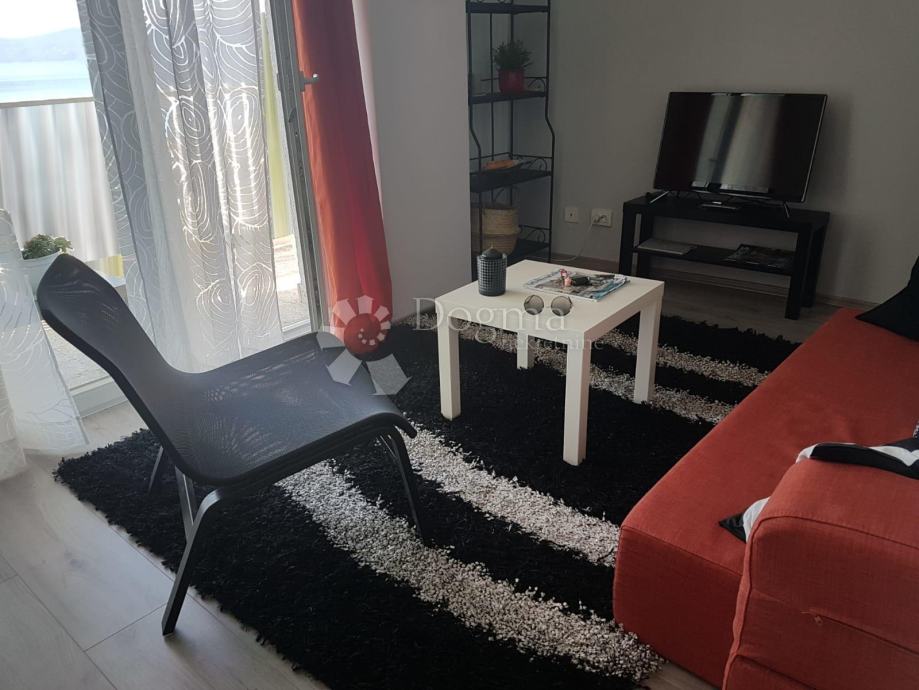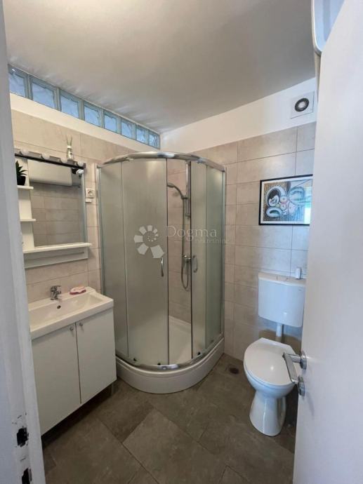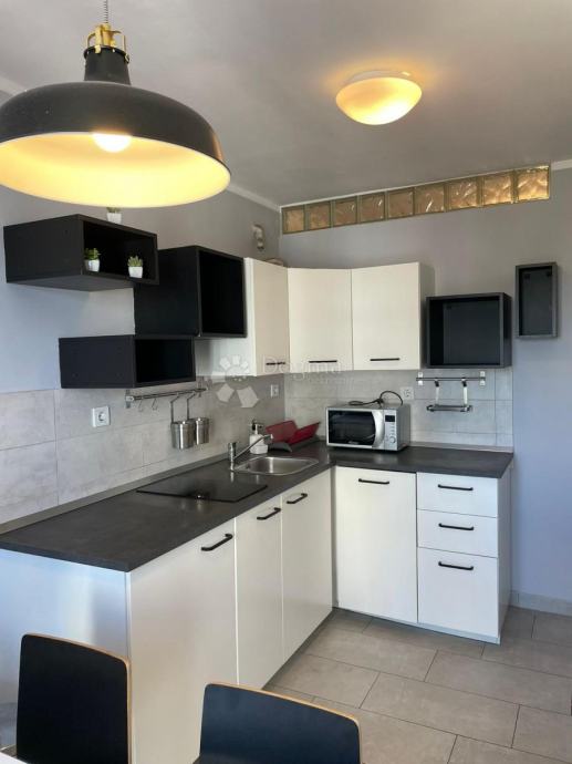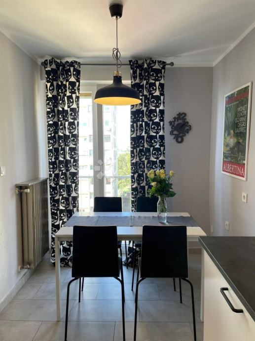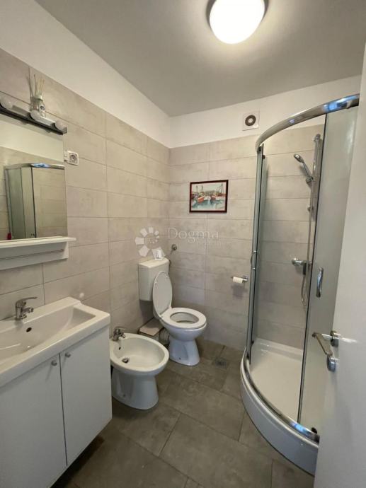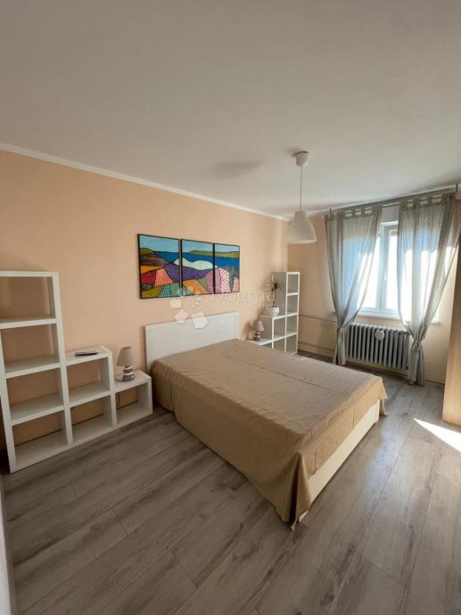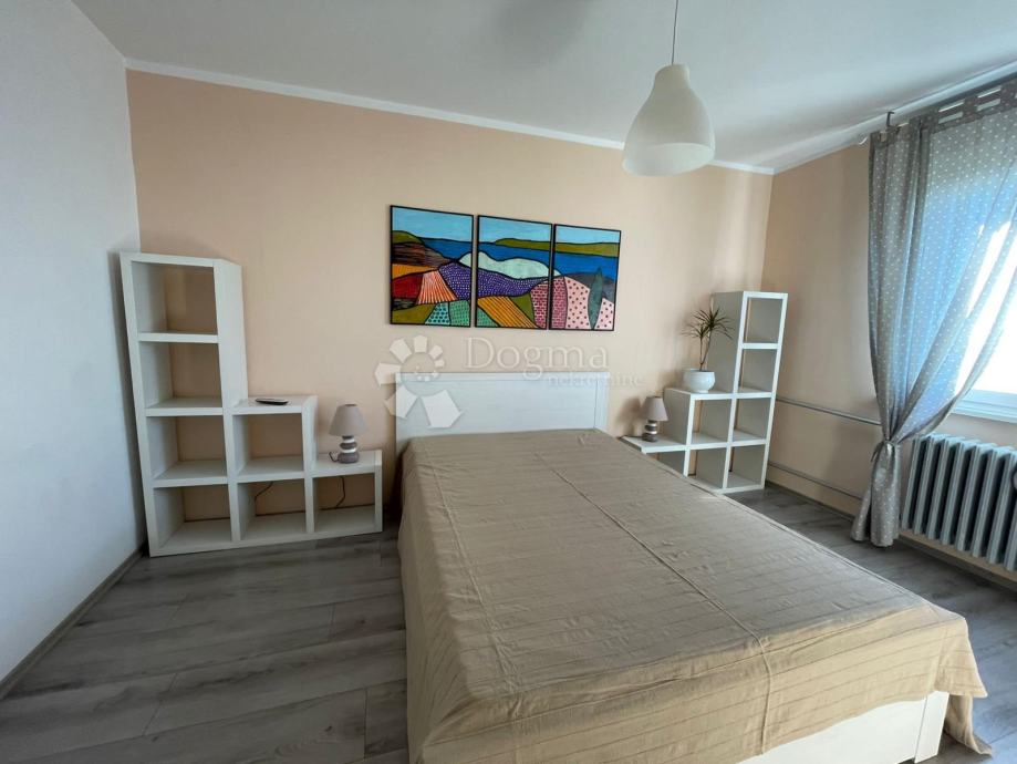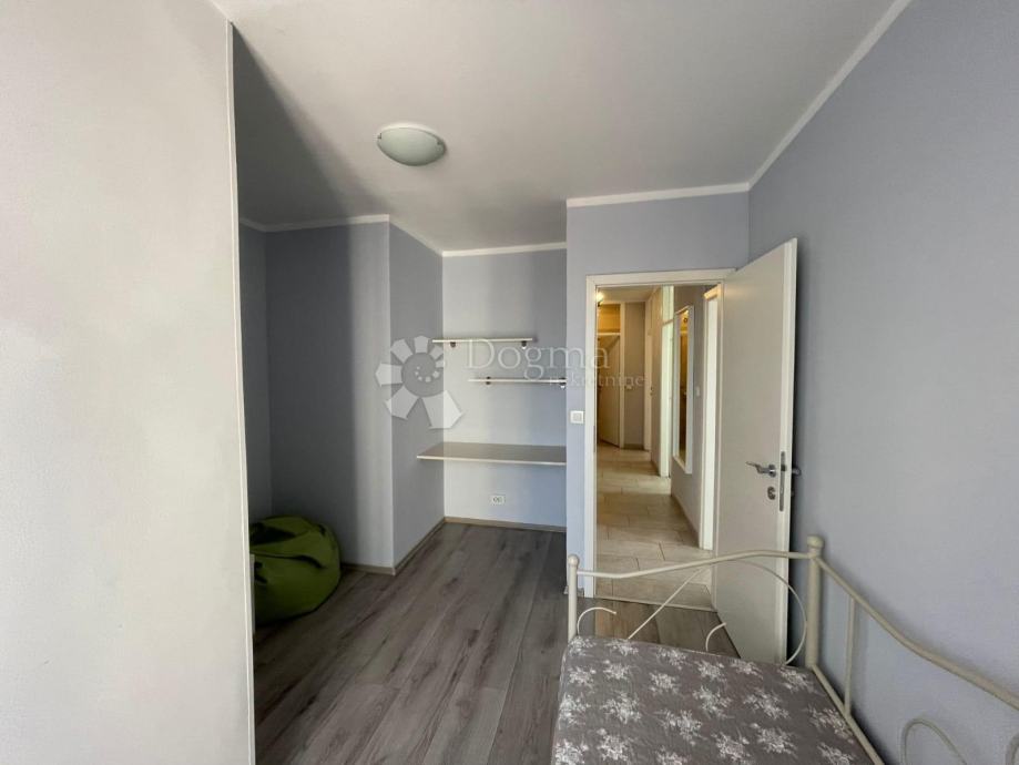 Iznajmljuje se 3S+DB potpuno uređen i namješten stan površine 80 m2 s balkonom i pogledom na more. Stan se sastoji od ulaznog hodnika, 3 spavaće sobe, dnevnog boravka s izlazom na balkon, kuhinje sa blagovaonom i kupaone. Blizina centra i svih sadržaja.