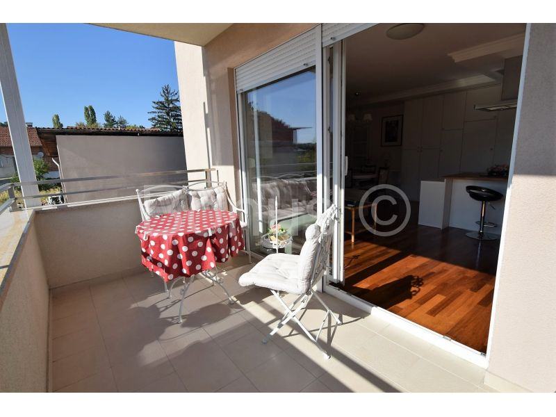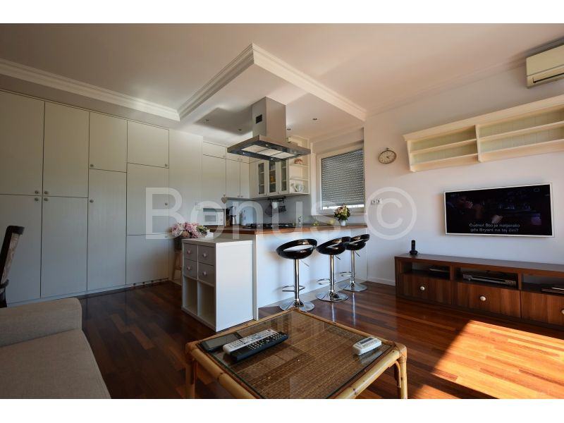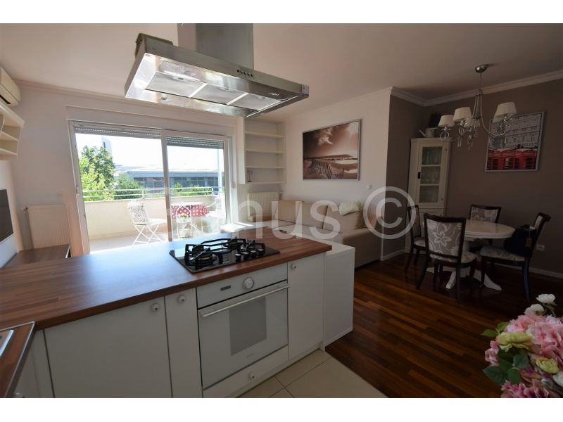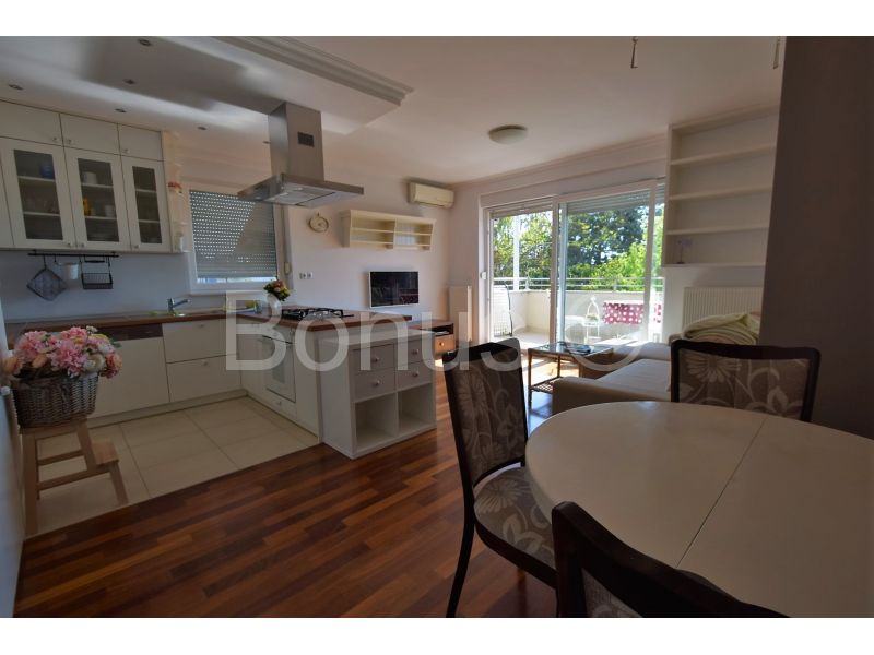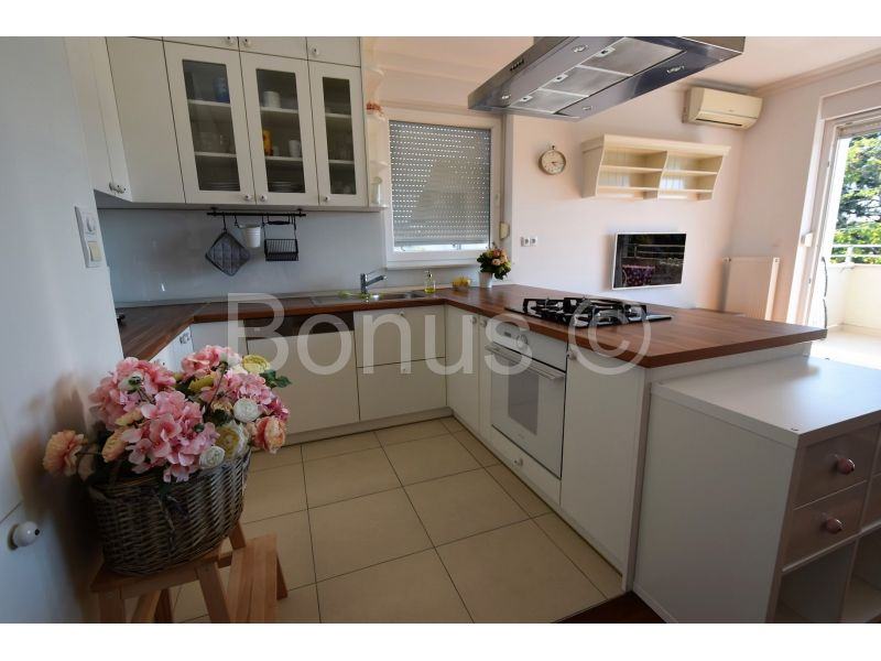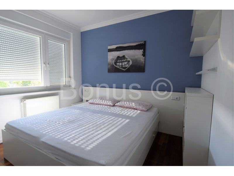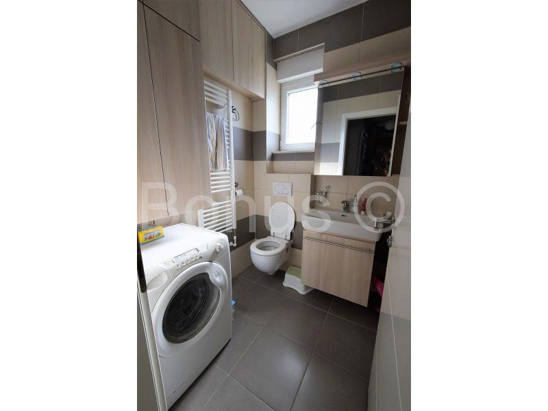 The apartment is fully furnished with all household appliances (washing machine, dishwasher, microwave, TV, freezer in the basement, etc.), air conditioning, security door, intercom with video surveillance, as well as internet, telephone, and ADSL. The windows are PVC, and heating is central gas with individual meters. The maintenance fee is 160 HRK/month and is covered by the apartment owner. The average utility costs in winter amount to 1,000 HRK/month.